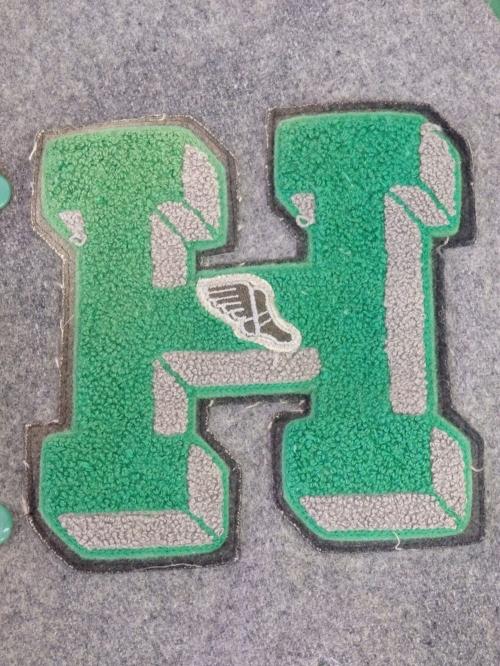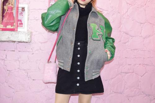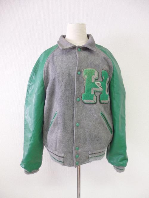 SIZE:総丈69/肩幅54/袖丈60/バスト108 COLOR:Green(レザー)Gray(ウール) RANK:A(リブに使用感、ワッペン左上に若干の日焼けあります)