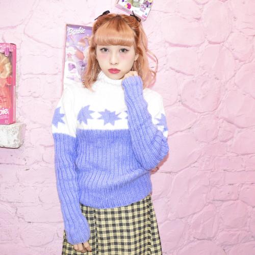 星柄リブニットセーター (LAV/WHT)