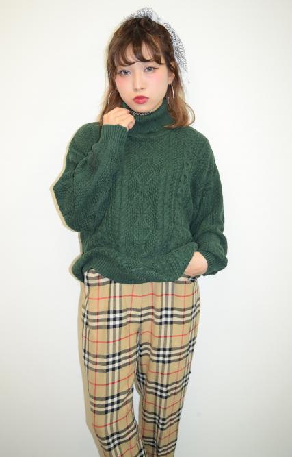 Turtle-neck Knit Sweater(Moss Green)