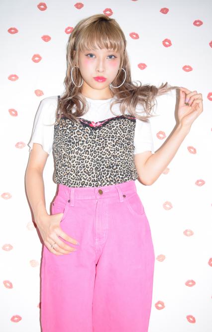 ピンクのサテンリボン、レーストリムデザイン、 極上デザインなレオパード柄のヴィンテージランジェリー ピンクのデニムとフープピアスで、 《90’s BAD GIRL STYLE♪》