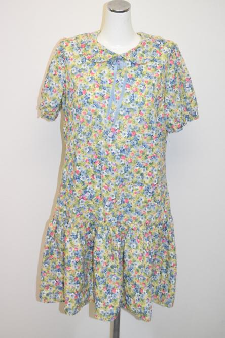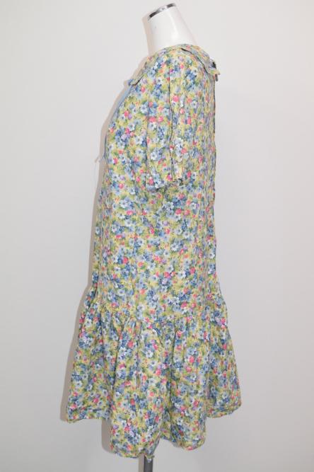 丸襟にリボン、 とびきりキュートなフラワーワンピース vintageドレスに敵うものは有りません。。