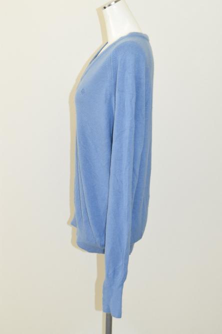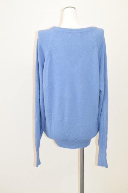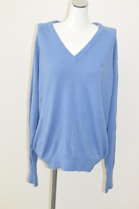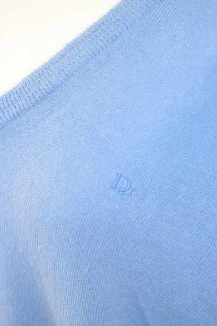 マッドなブルーが大人な雰囲気の、 ディオールのVネックニットセーター♪ つけ襟などで可愛くレイヤードできます☆