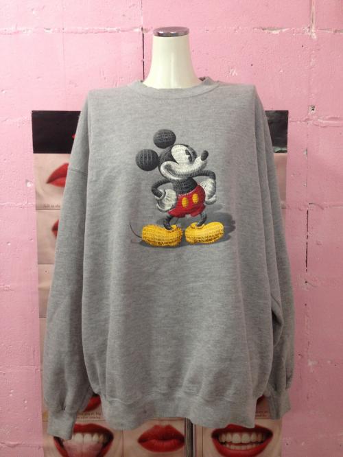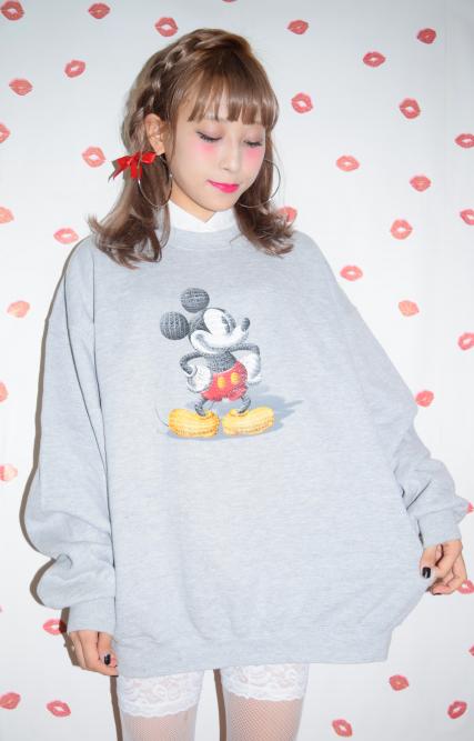 ヴィンテージならではのクラウディグレーボディに クラシックタッチなミッキープリントがキュートなビッグスウェット