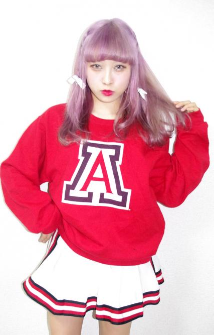 レッドボディにBIG LOGOがキュートなヴィンテージスウェットトップ。 トレンドのCHEER GIRL STYLEに♪
