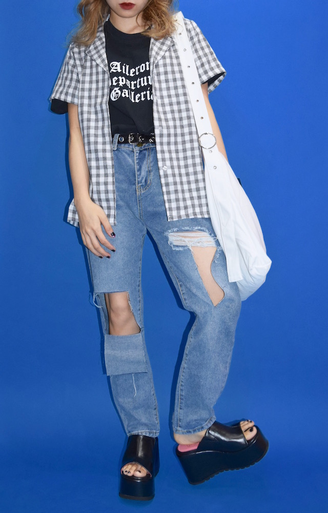 ギンガムチェック オープンカラーシャツ