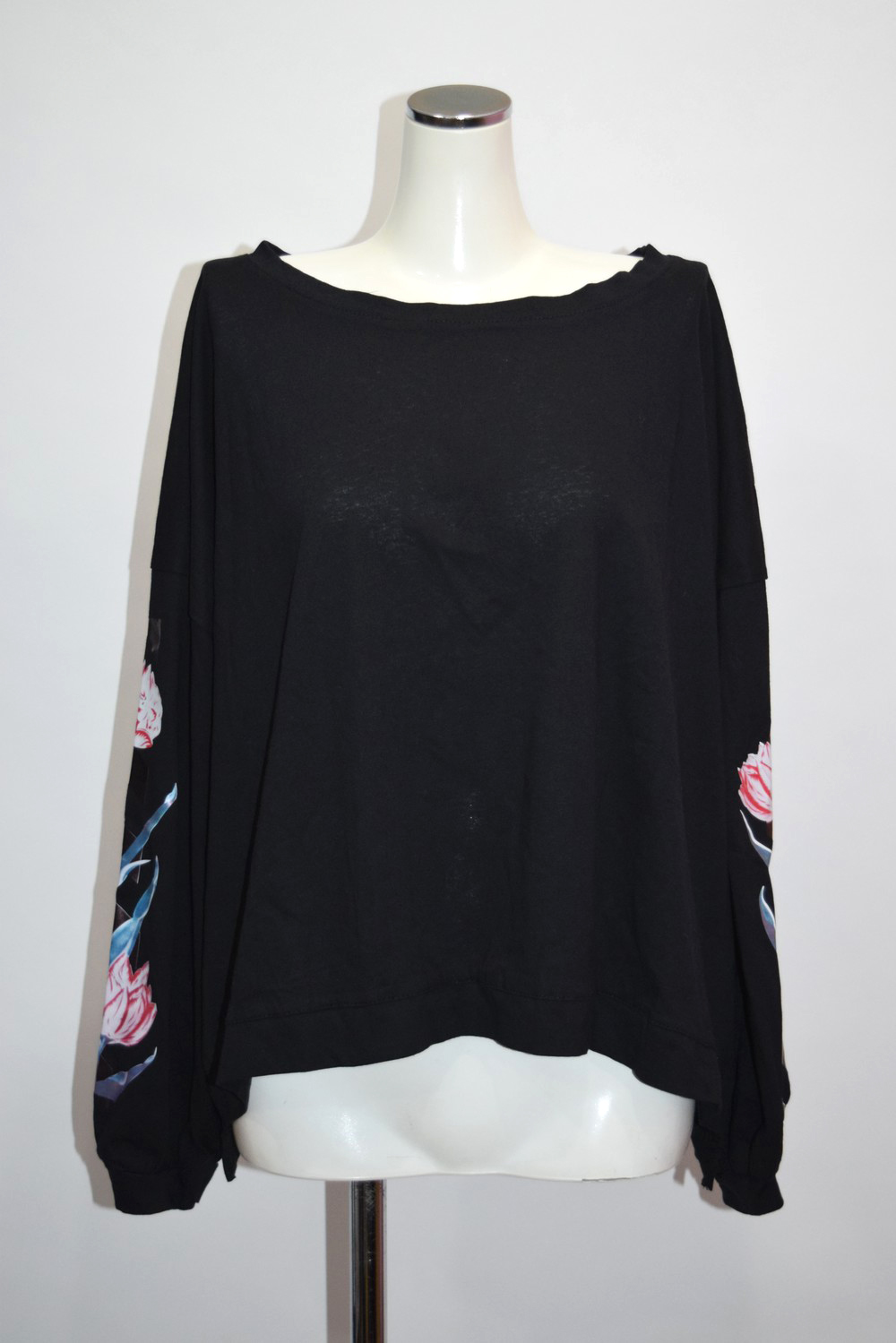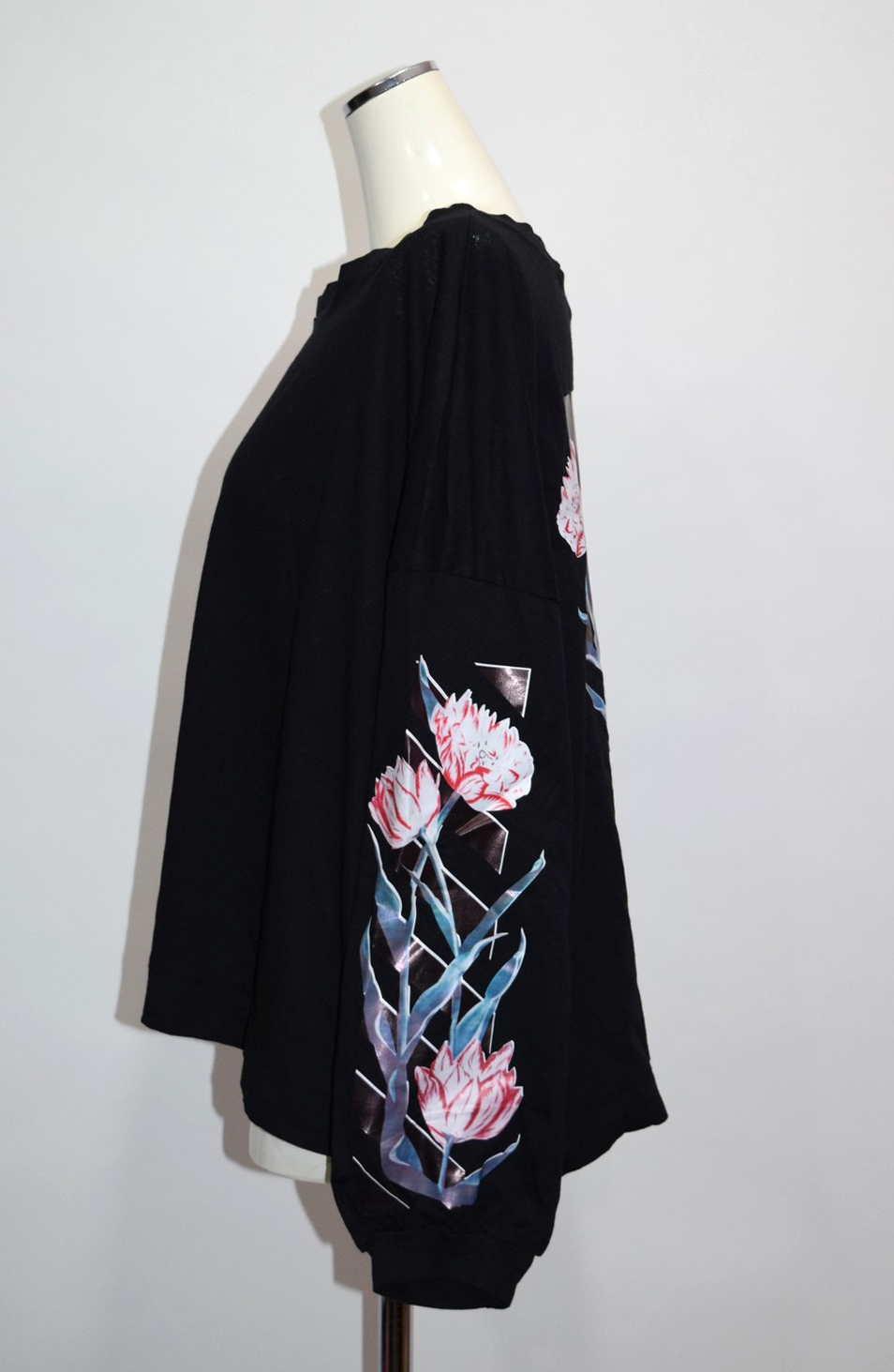 FLORAL SLEEVE LOOSE-FIT TOPS(BLK)