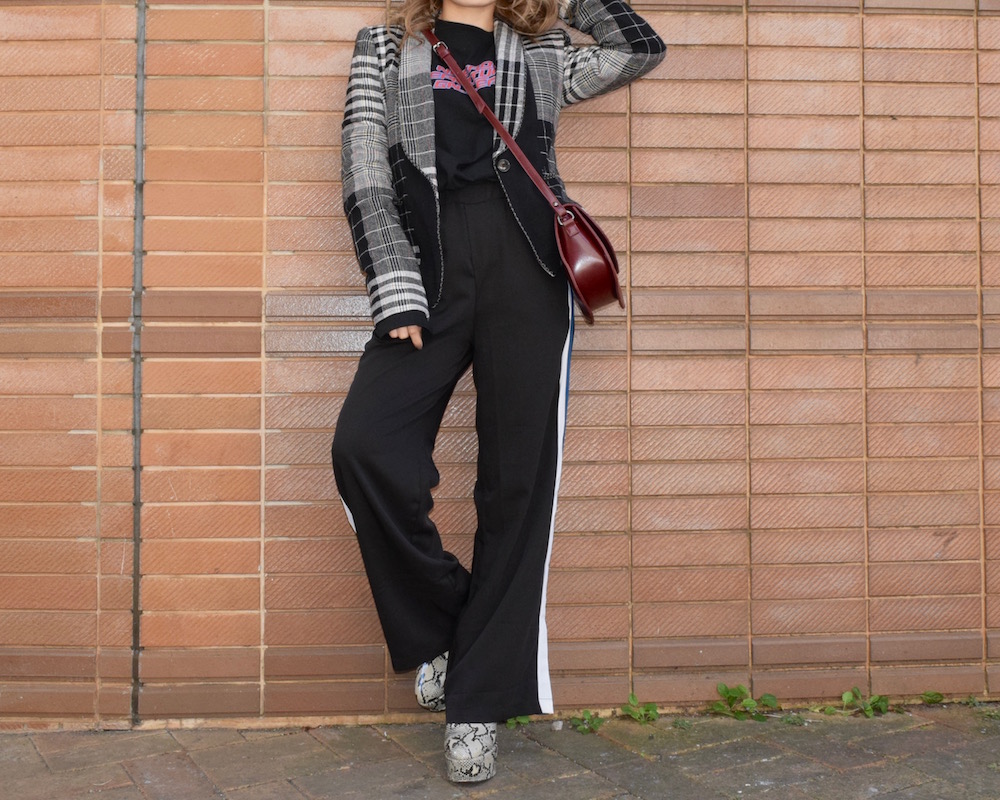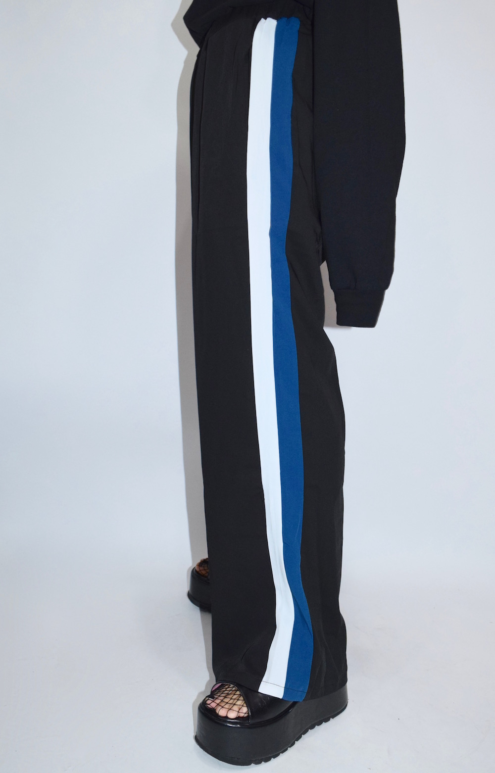 2 COLOR SIDE LINE WIDE-PANTS (BLK)