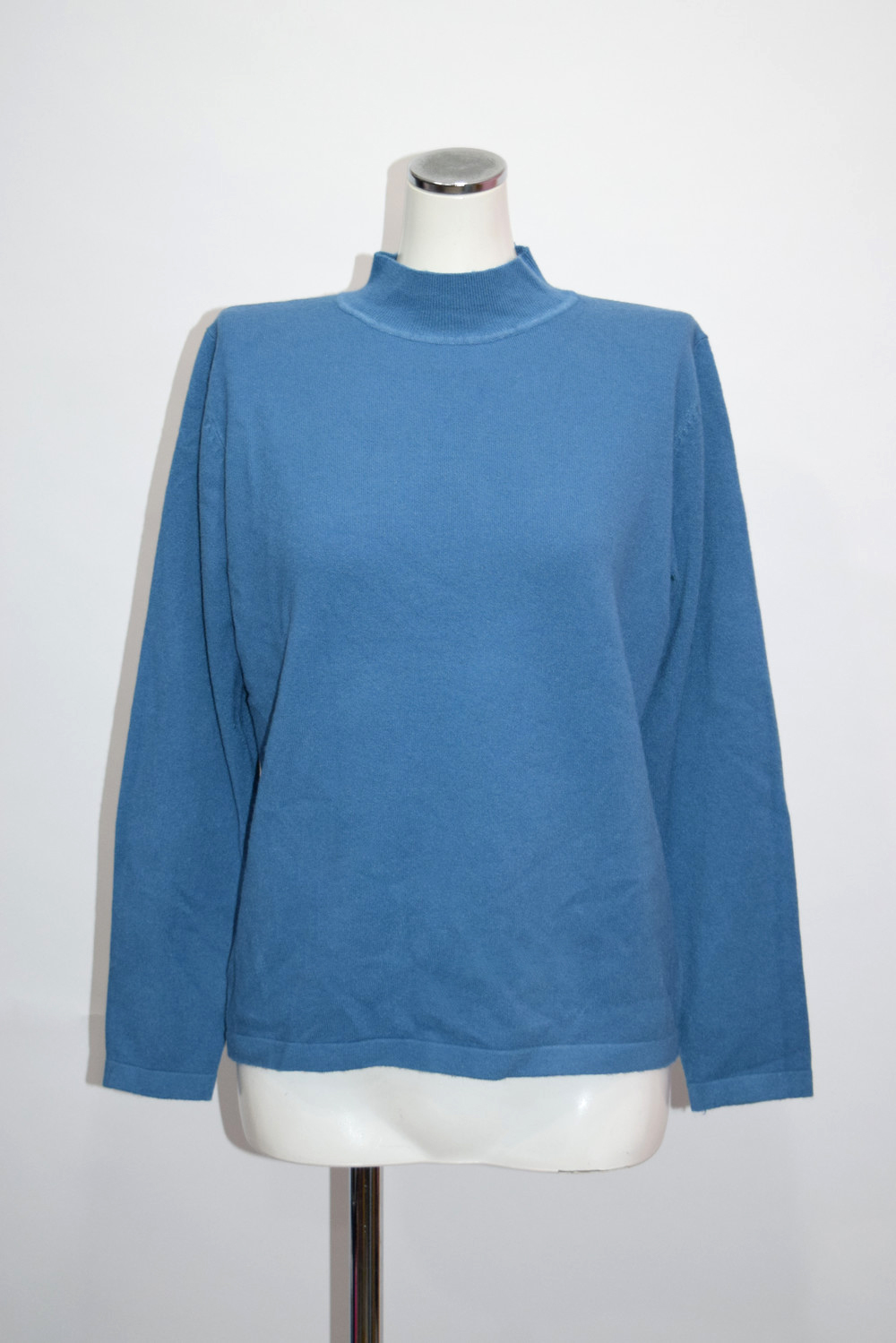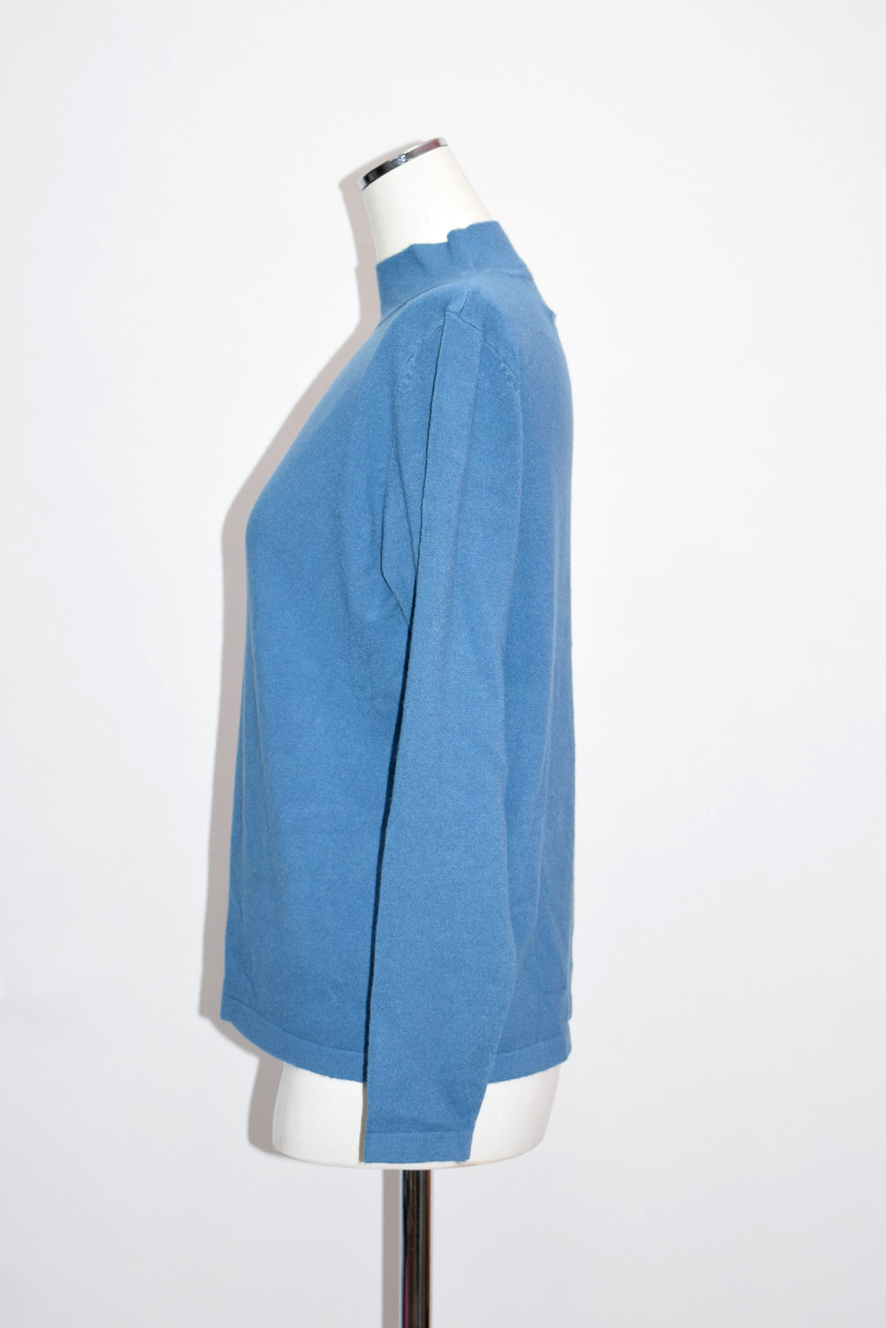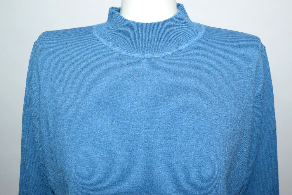 ベーシックハイネックスムースニットトップス(BLUE)