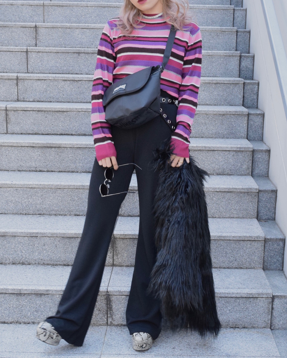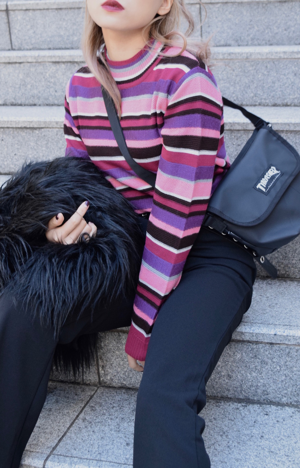 MULTI COLOR STRIPES KNIT PO(PINK)