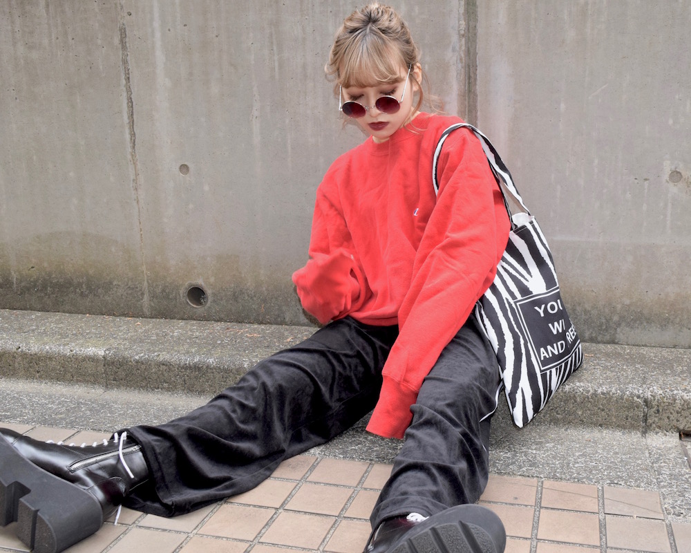 【WEB限定】"Champion"1point Logo Reverse Weave Sweat(RED)
