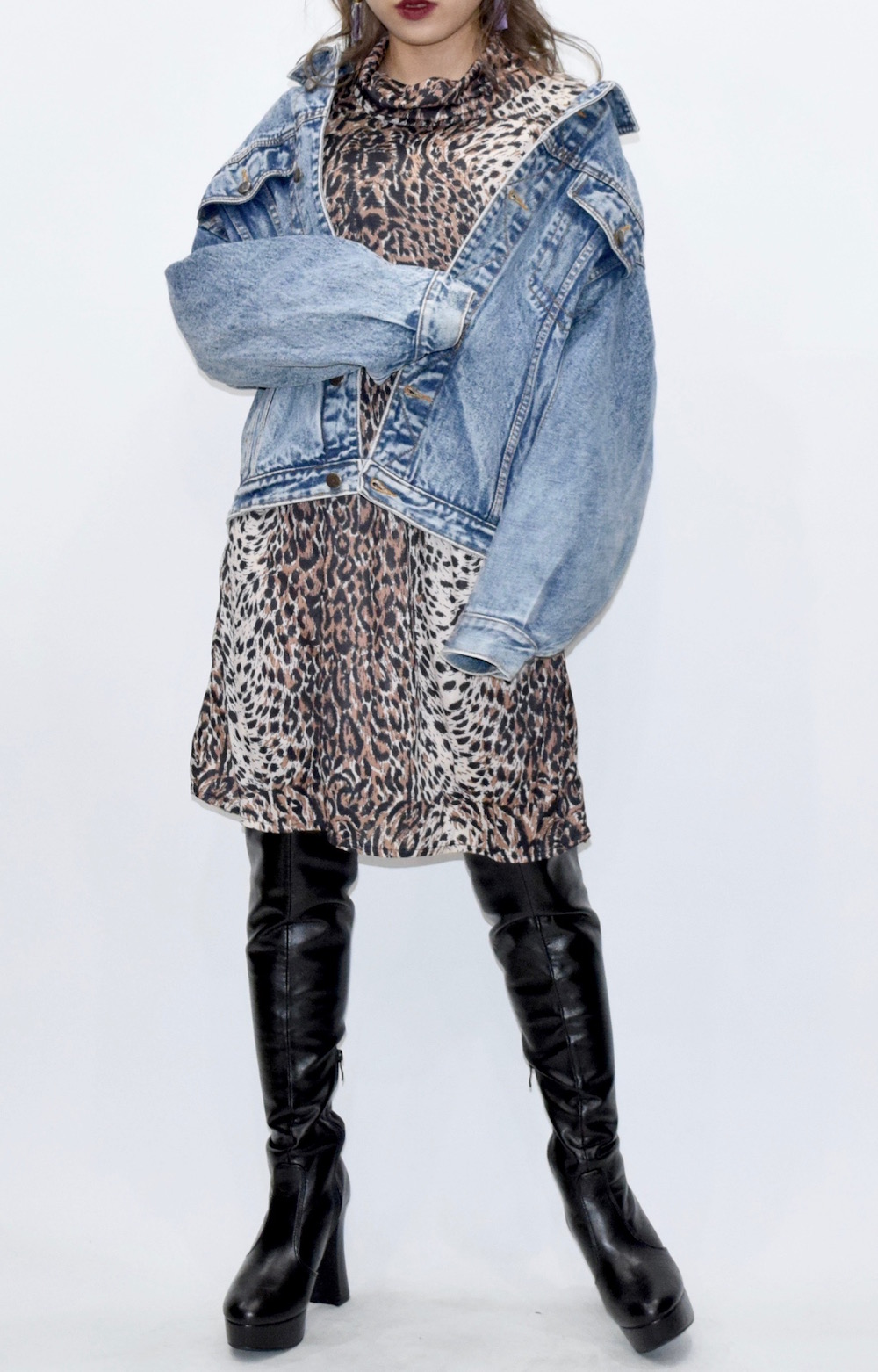 【WEB限定】Turtleneck Leopard Onepiece(BRN)