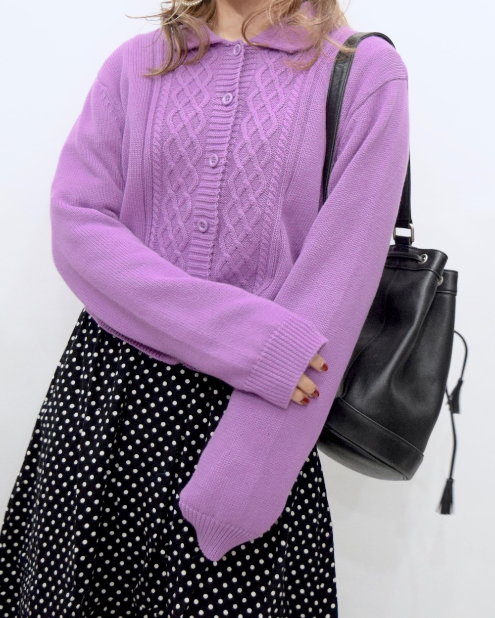 ROUND COLLAR KNIT CARDIGAN(LAV)