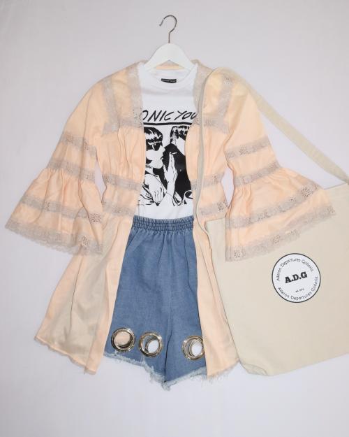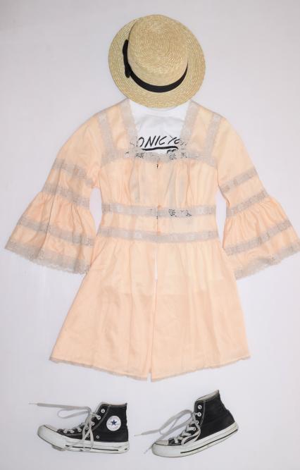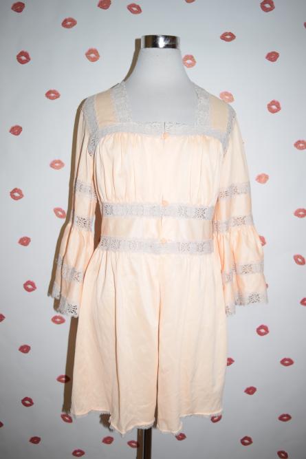 レースポイントデザインにフレアスリーブ、 パステルキュートな ヴィンテージベイビードール。 さらっと羽織って熟れ感のあるガウンスタイル、 前を閉めてワンピースで着こなすのもきゅーと (COLOR)1color ・Sherbet Orange (RANK) A (SIZE) 総丈:80cm 肩幅:41cm 袖丈:47cm バスト:86cm