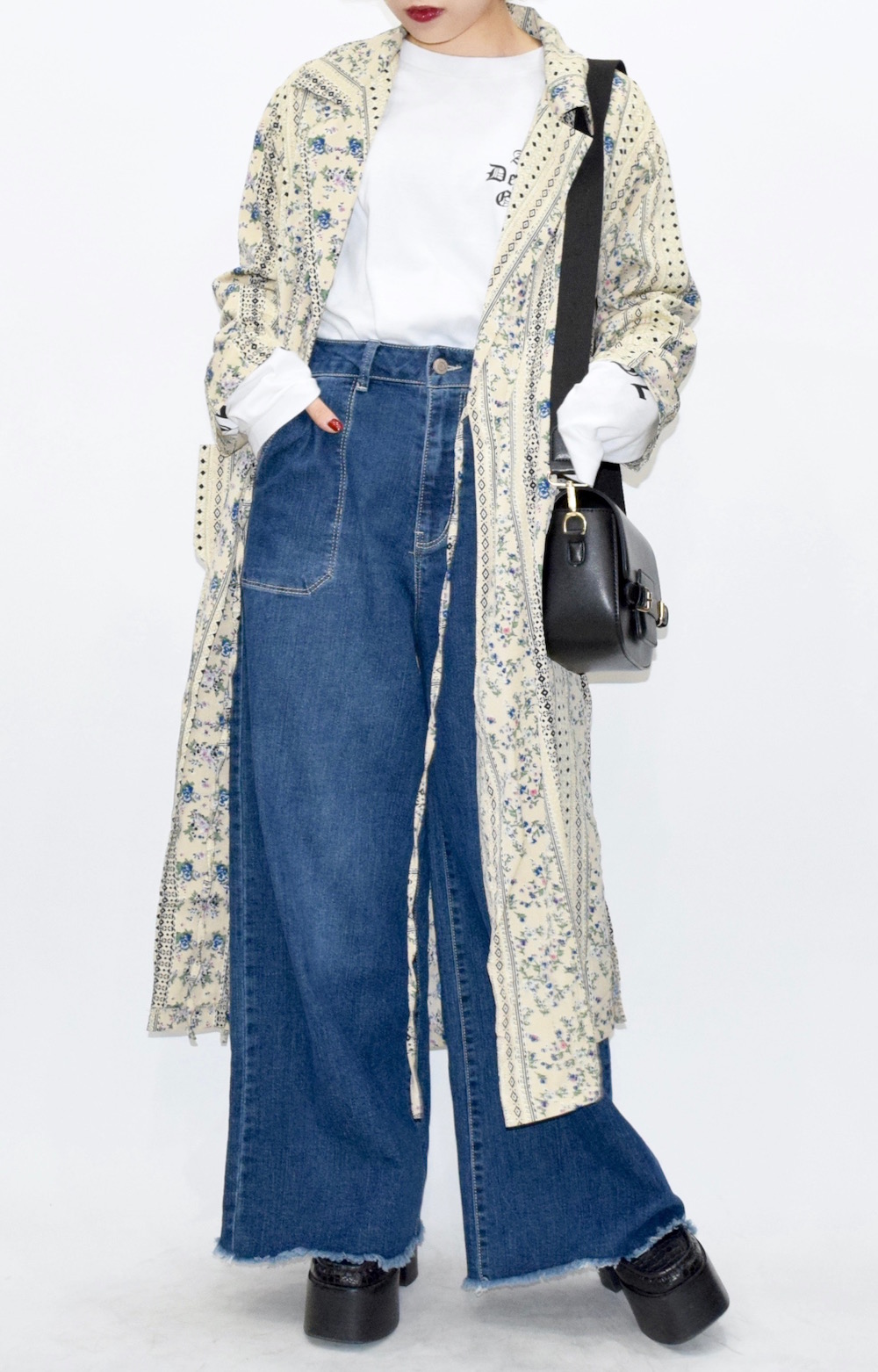 FLOWER STRIPE LONG GOWN JACKET(beige)