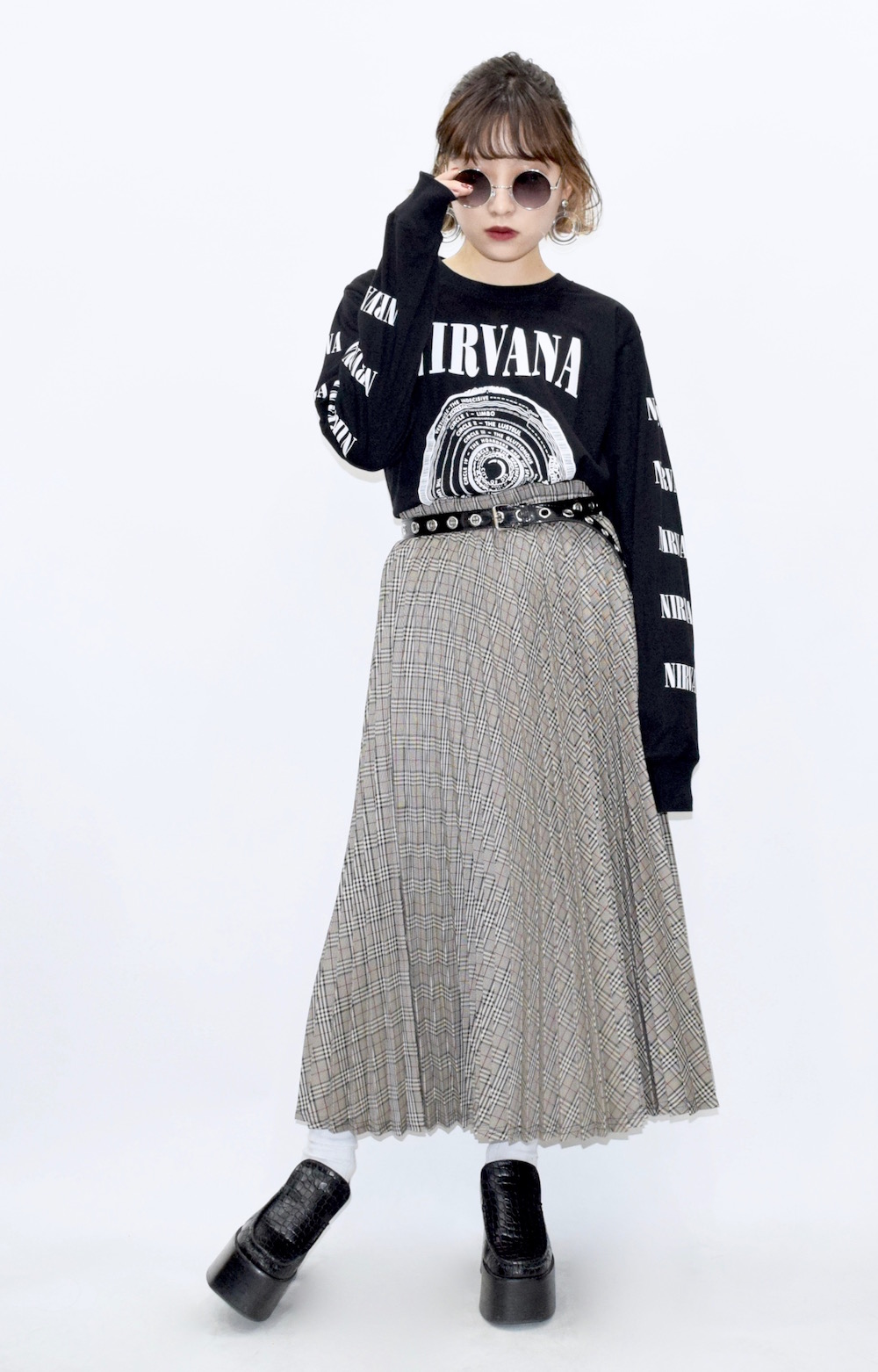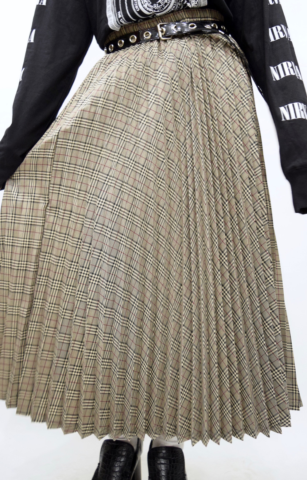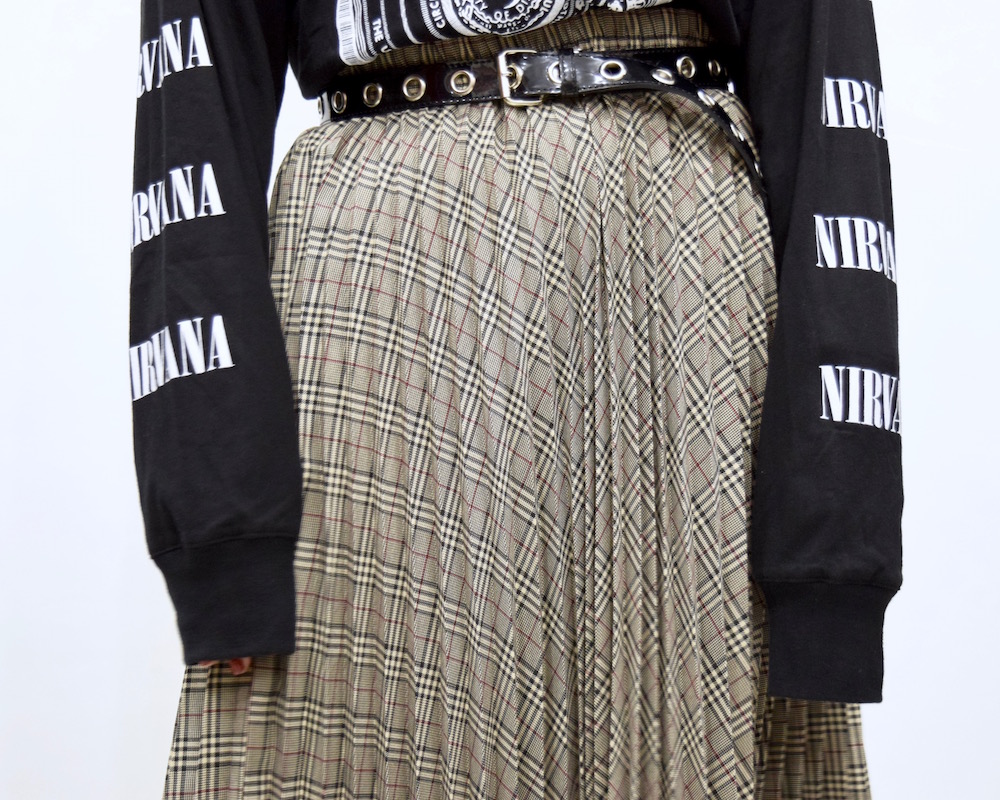 【HIGH GRADE PRODUCTS】BEIGE-TONE CHECK PLEATS LONG SKIRT