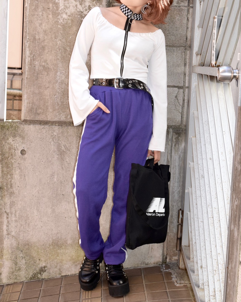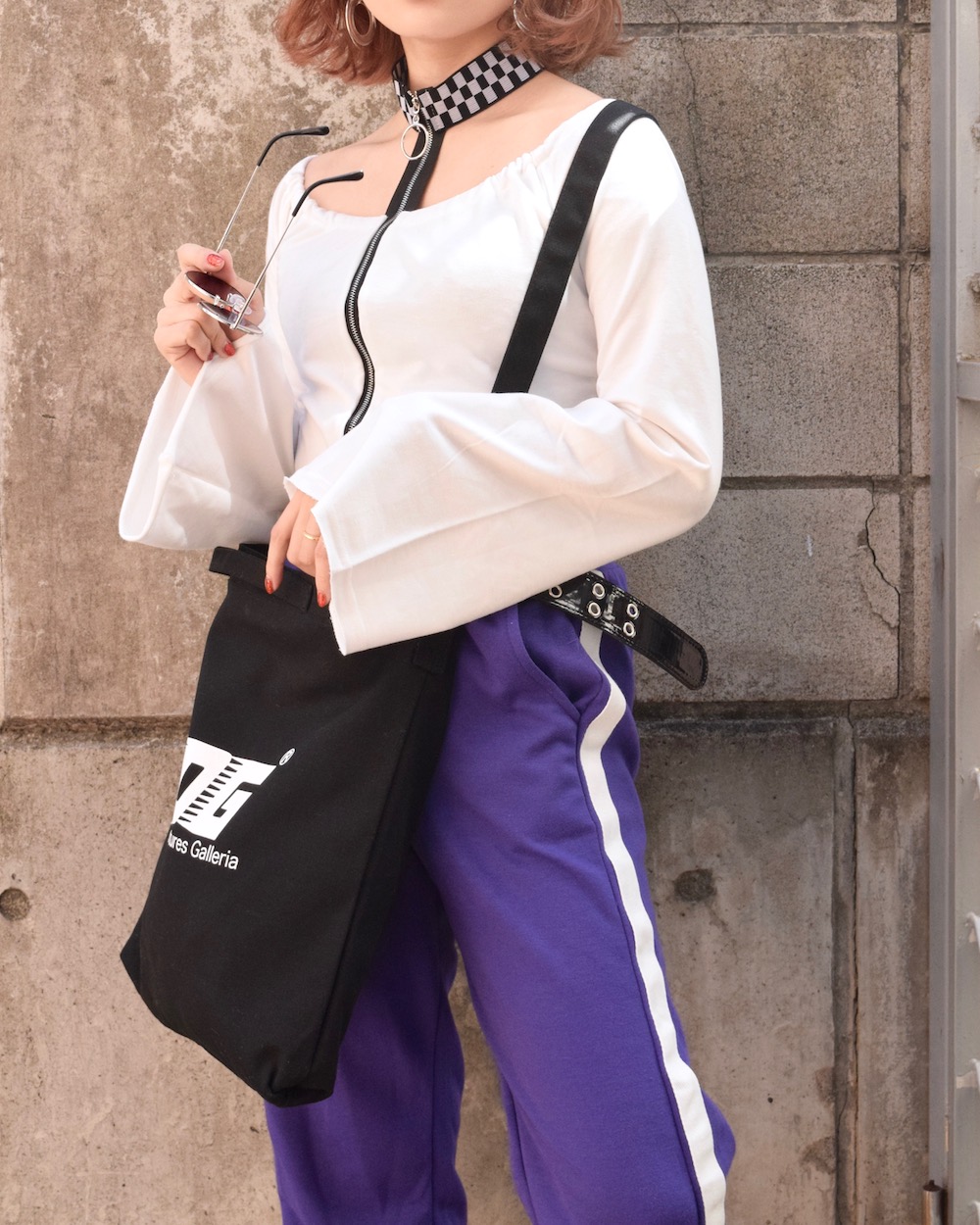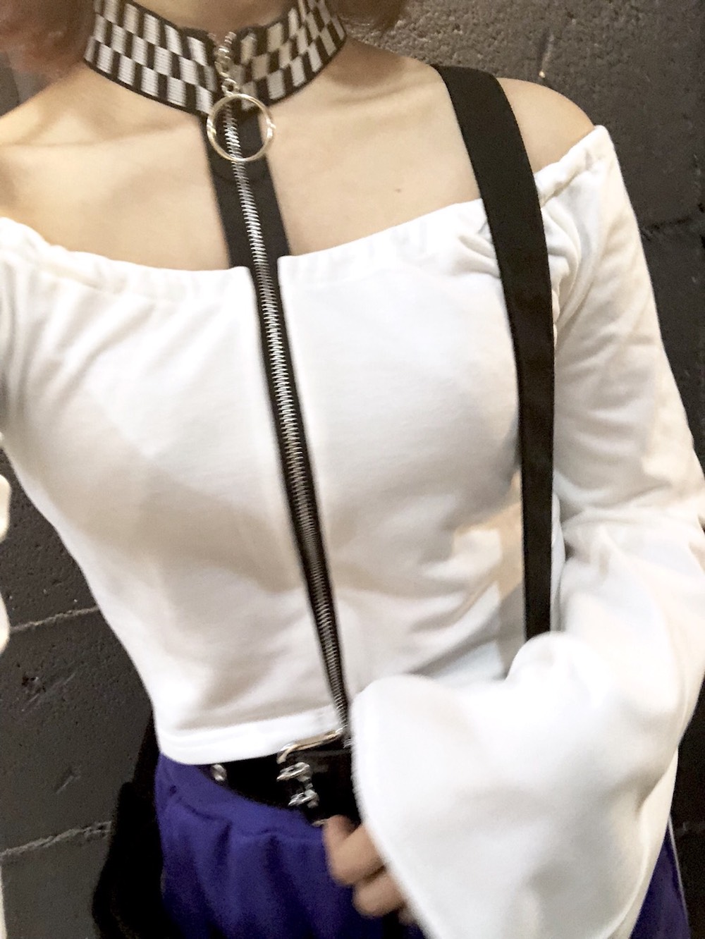 RING-ZIP CHECKERED CHOKER TOPS