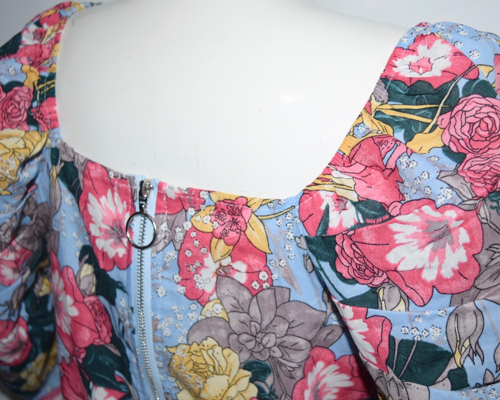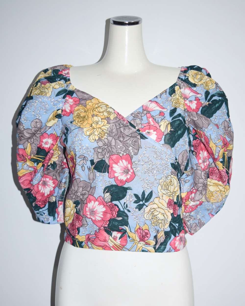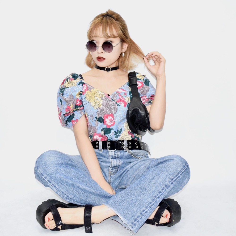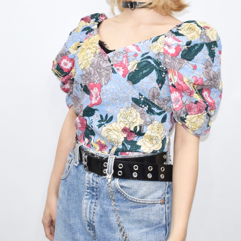 PUFF-SLEEVE FLOWER TOPS(sky)