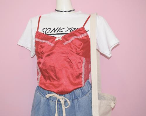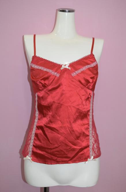【WEB限定】サテンとレースのランジェリーキャミソール(RED)