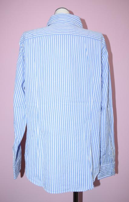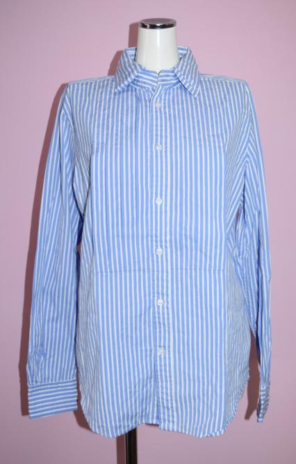 クリーンなストライプシャツは、 今期のストリートスタイルに欠かせないmust buy Item! (COLOR)1color ・Light Blue×White (RANK) A (SIZE) 総丈72cm, 肩幅38cm 袖丈62cm バスト94cm