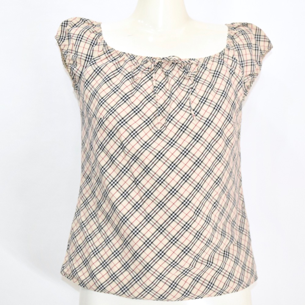 BURBERRY LONDON” TARTAN PUFF-SLEEVE TOPS(Beige) 3217 2 NIKE" GRAPHIC LOGO BIG TEE(black)