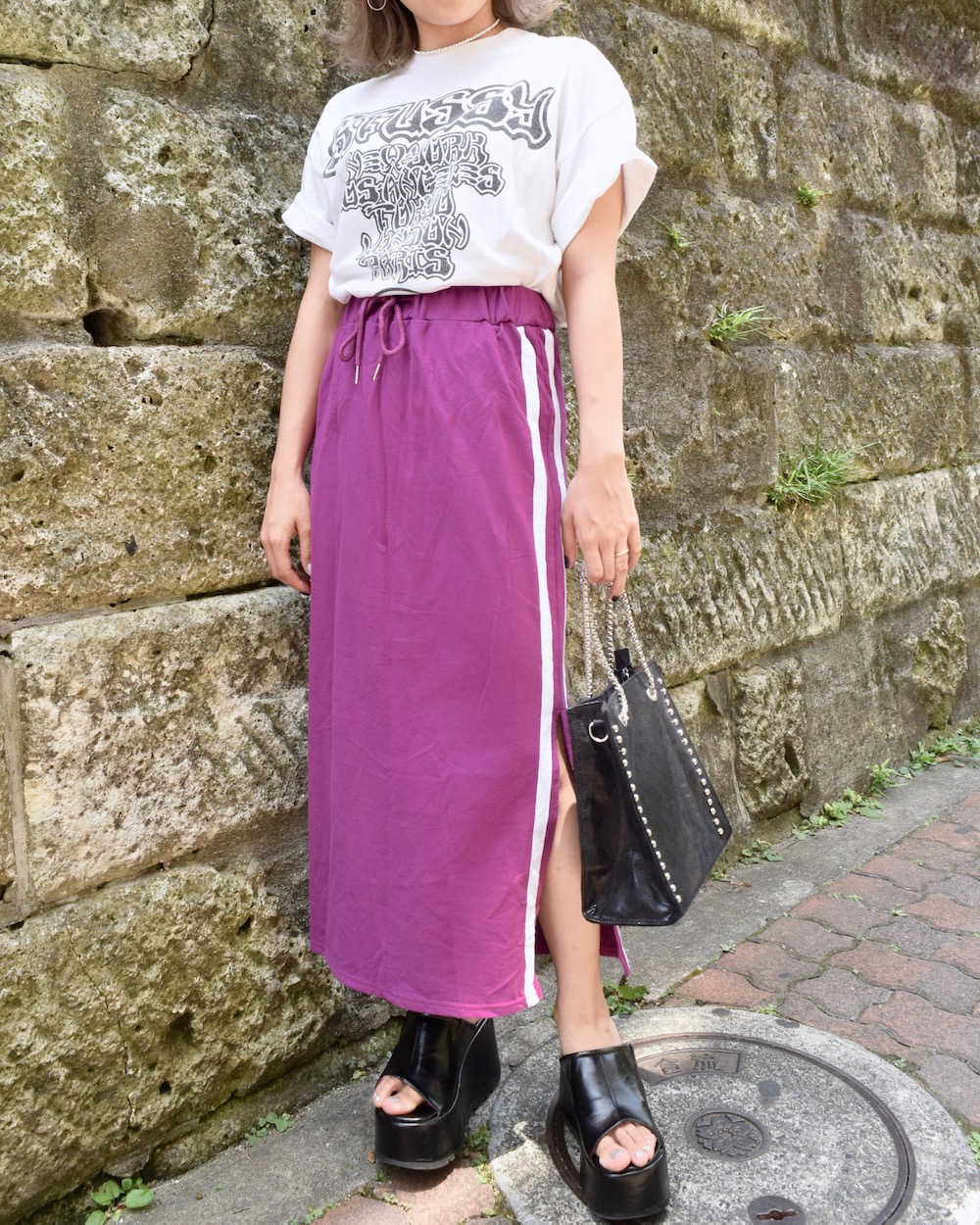 SIDE LINE&SLIT SWEAT SKIRT(purple)