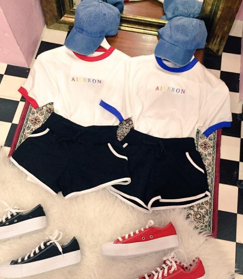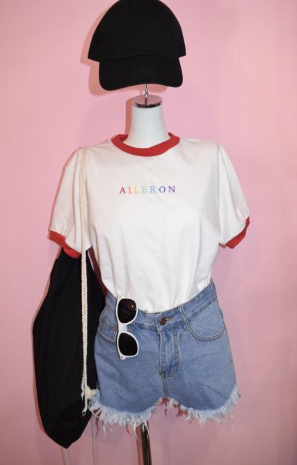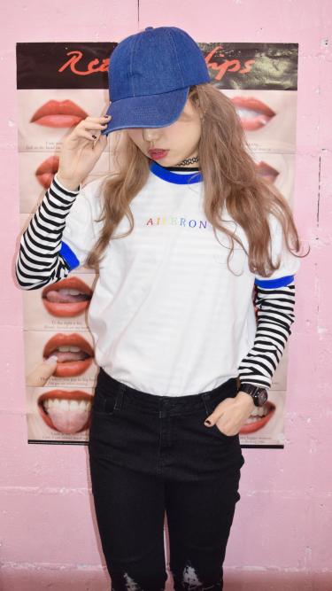 (全3色)レインボーロゴ刺繍トリムTシャツ