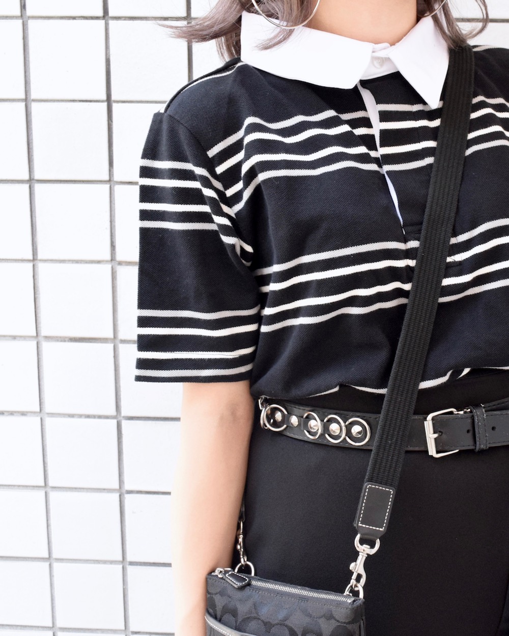 WHITE COLLAR BORDER POLO SHIRTS(black)