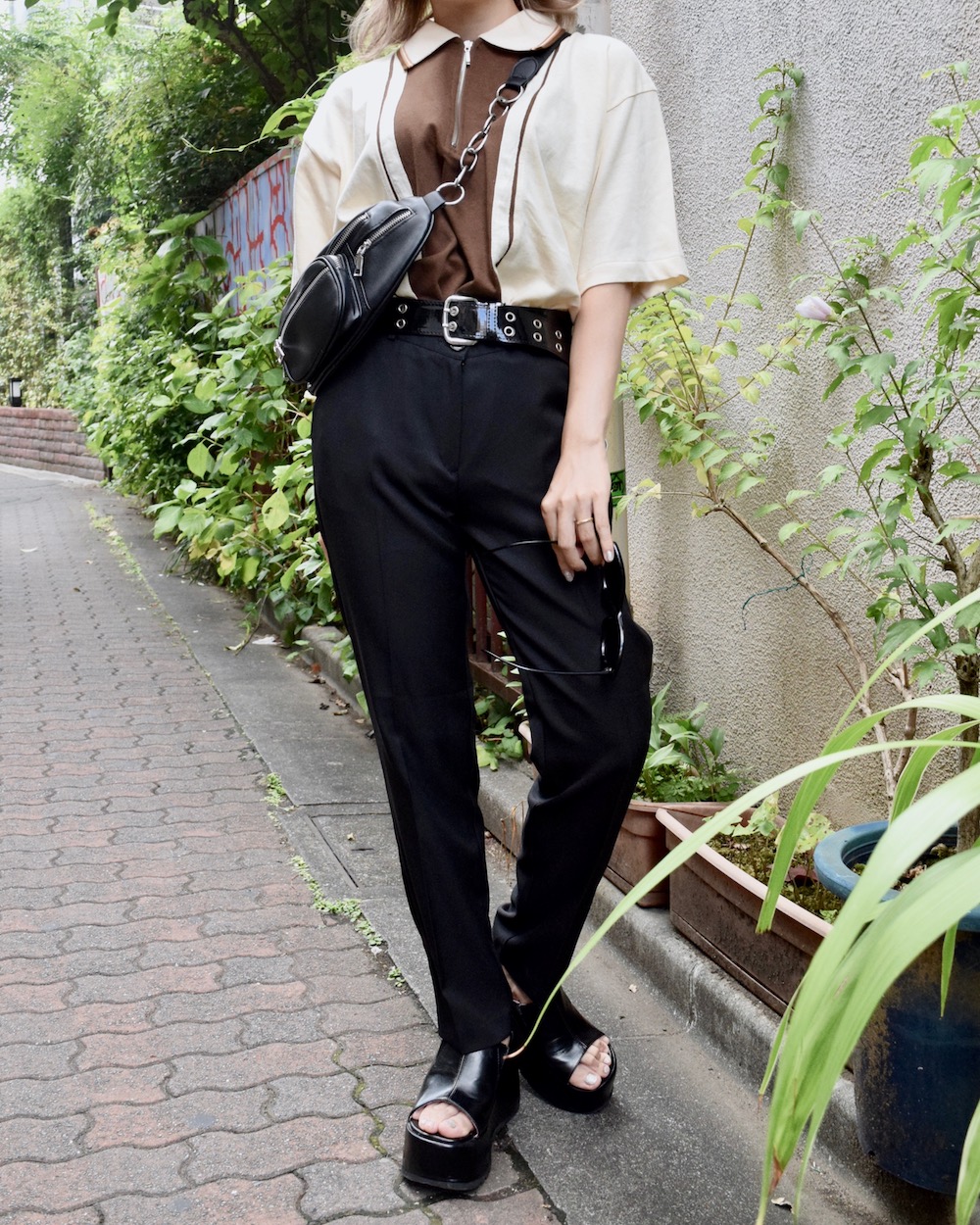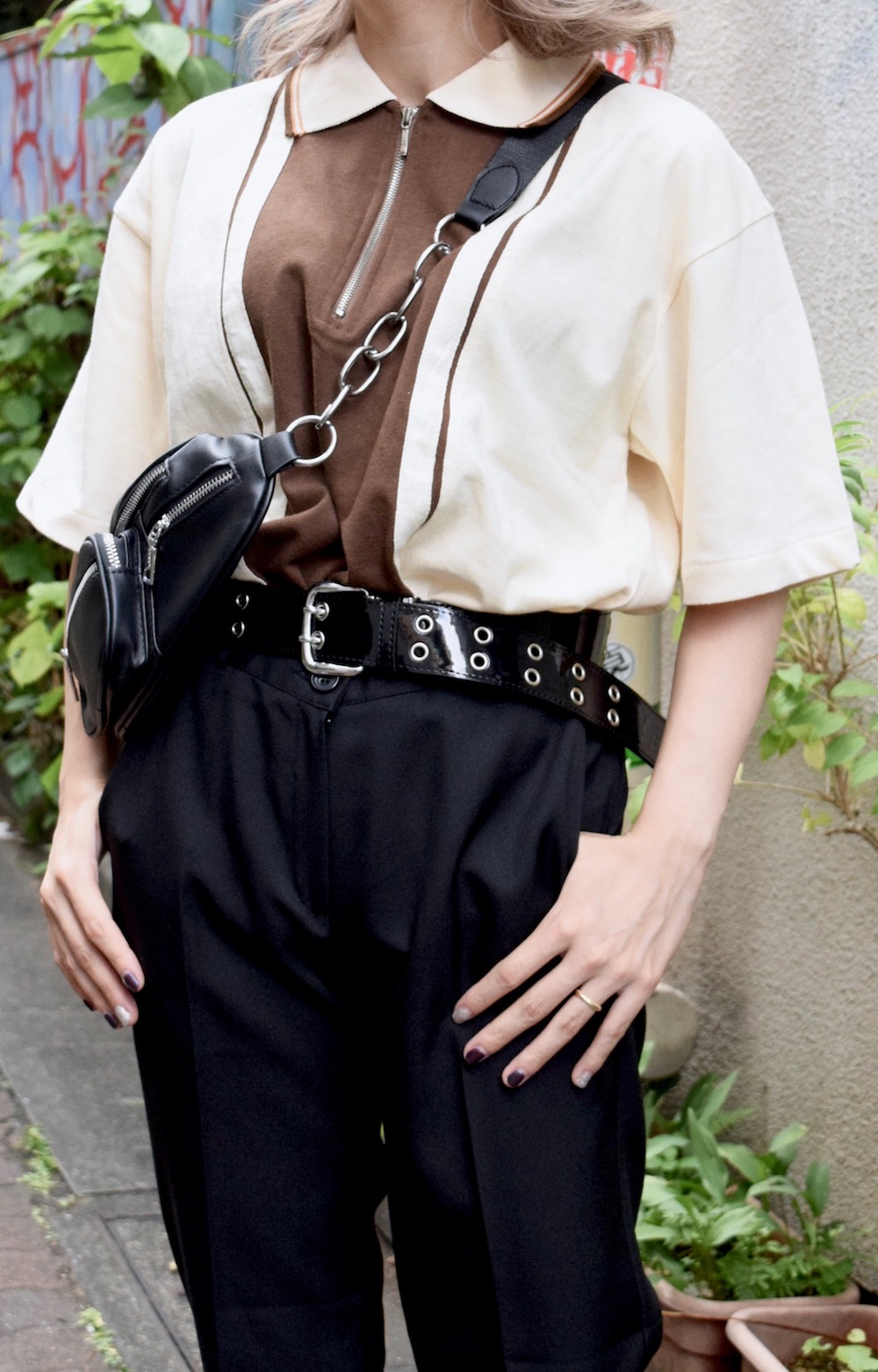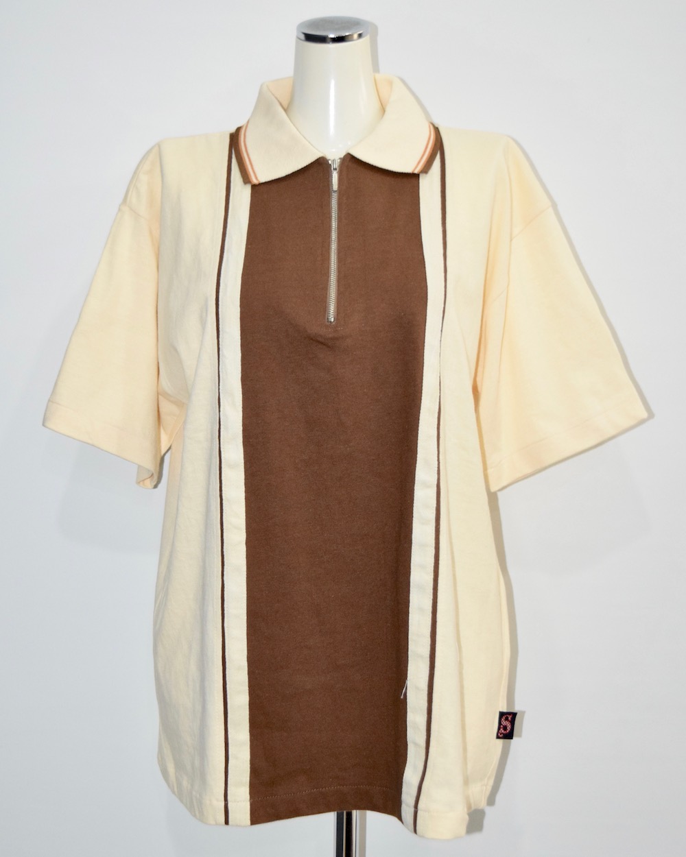 LINE COLLAR HALF-ZIP STRIPE TOPS