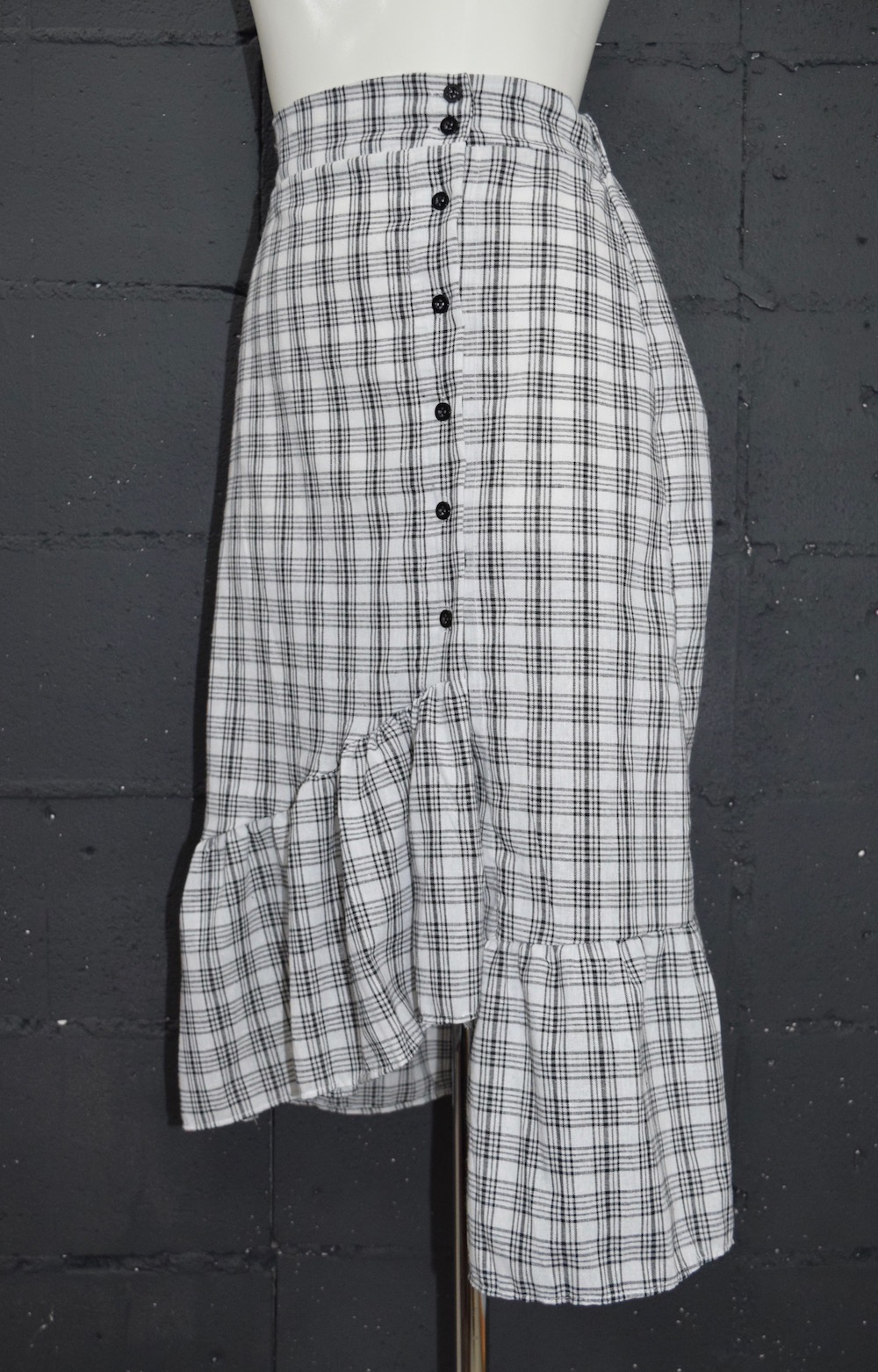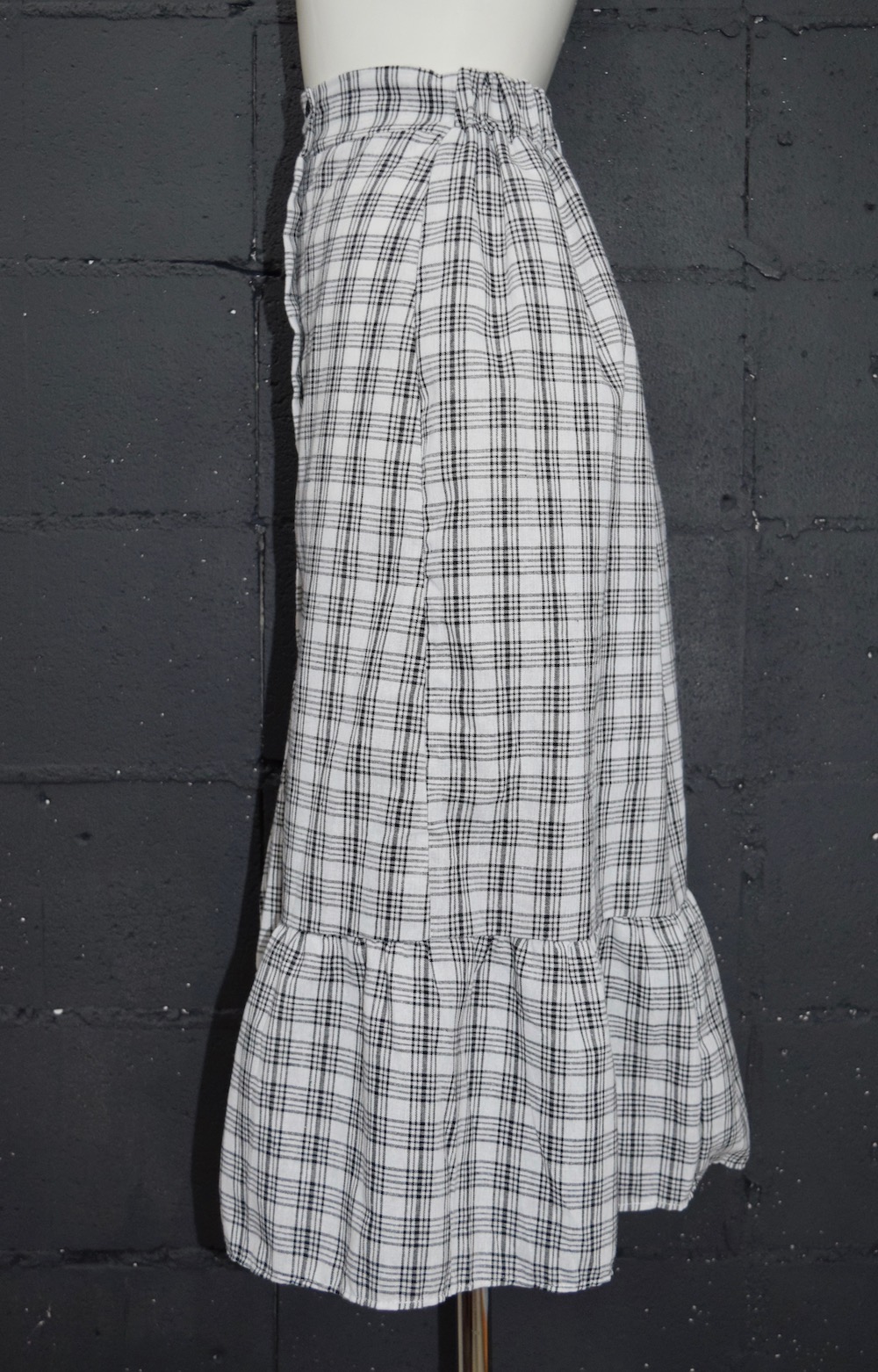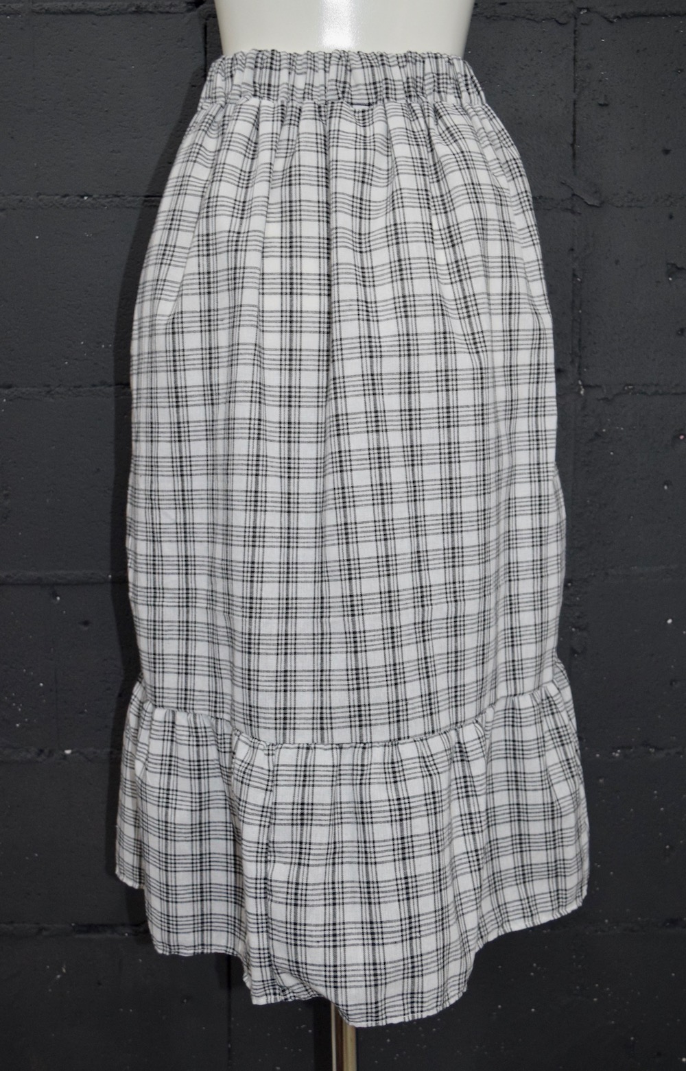 HEM-FRILL CHECK SKIRT(white)