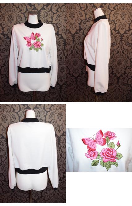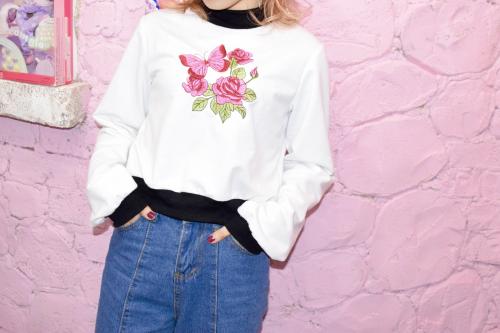 「薔薇と蝶々の刺繍トップス」