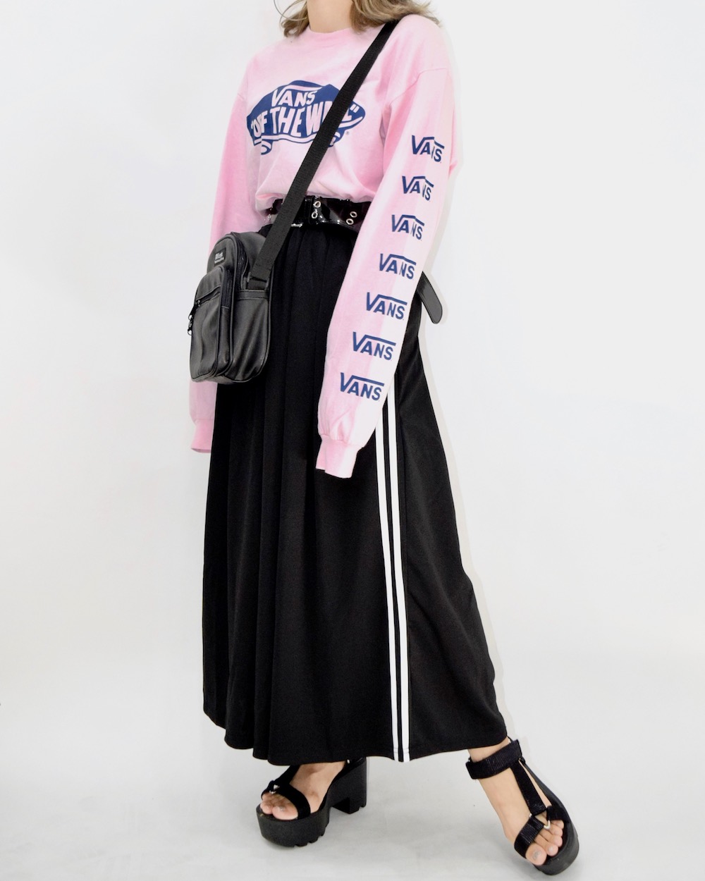 Side Line Black Long Flare Skirt