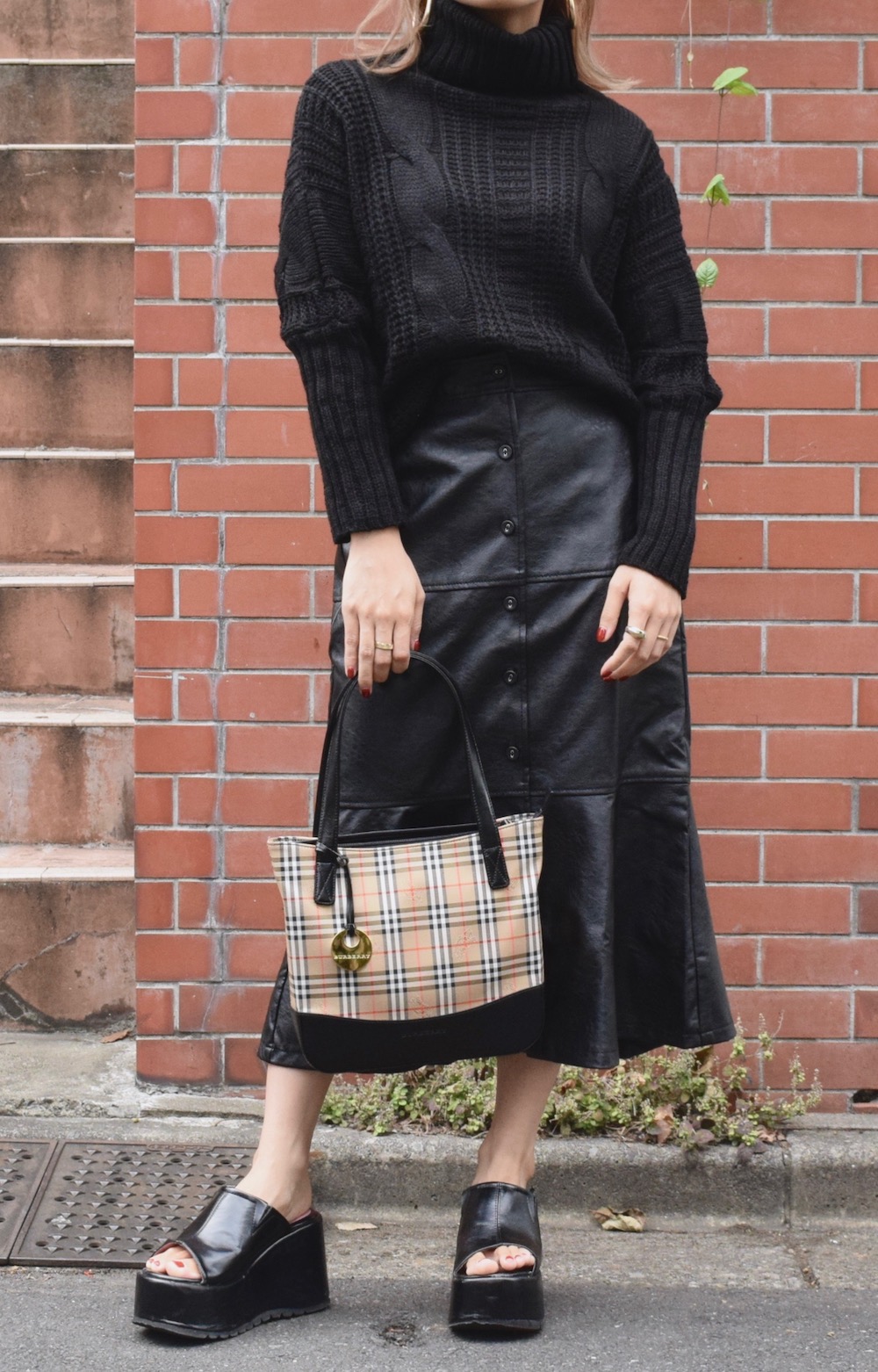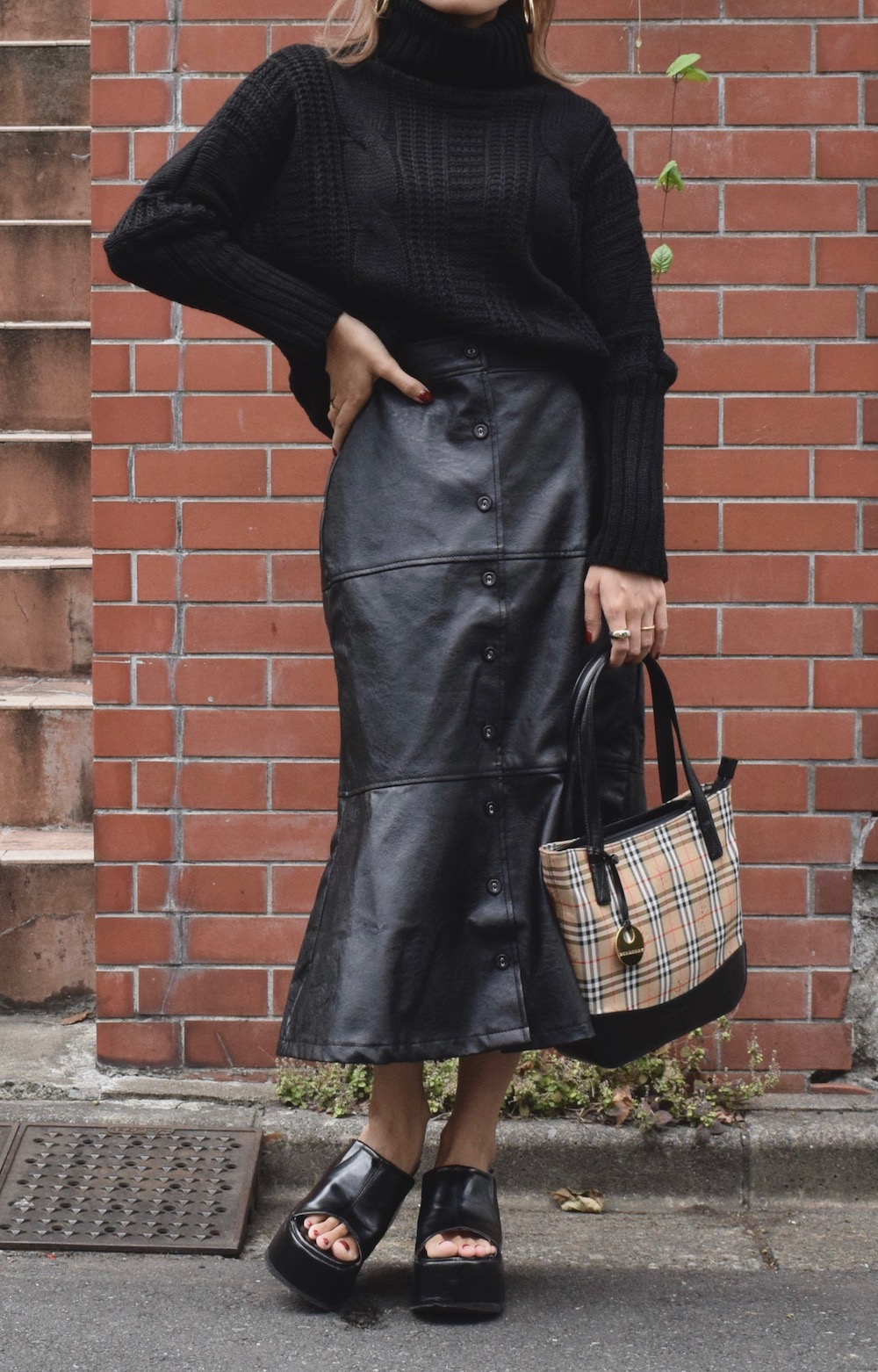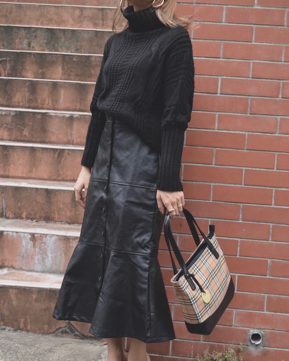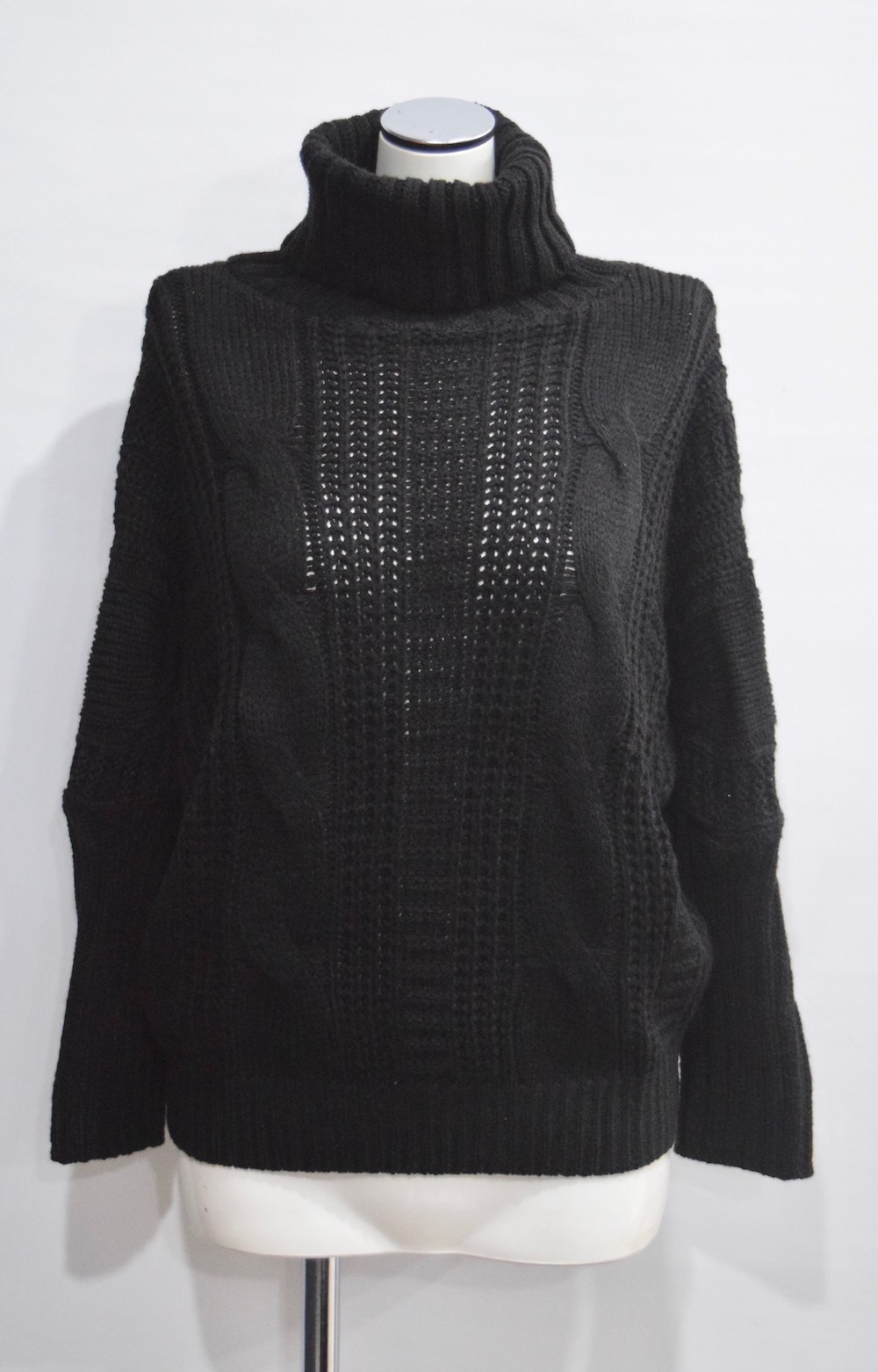 TURTLE NECK CABLE KNIT SWEATER(black)