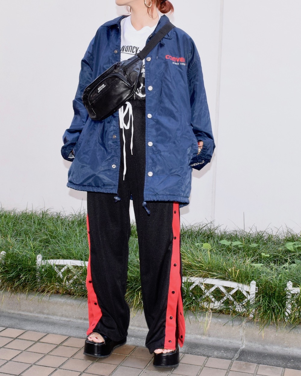CONVERSE LOGO HOODED COACH JACKET(navy)