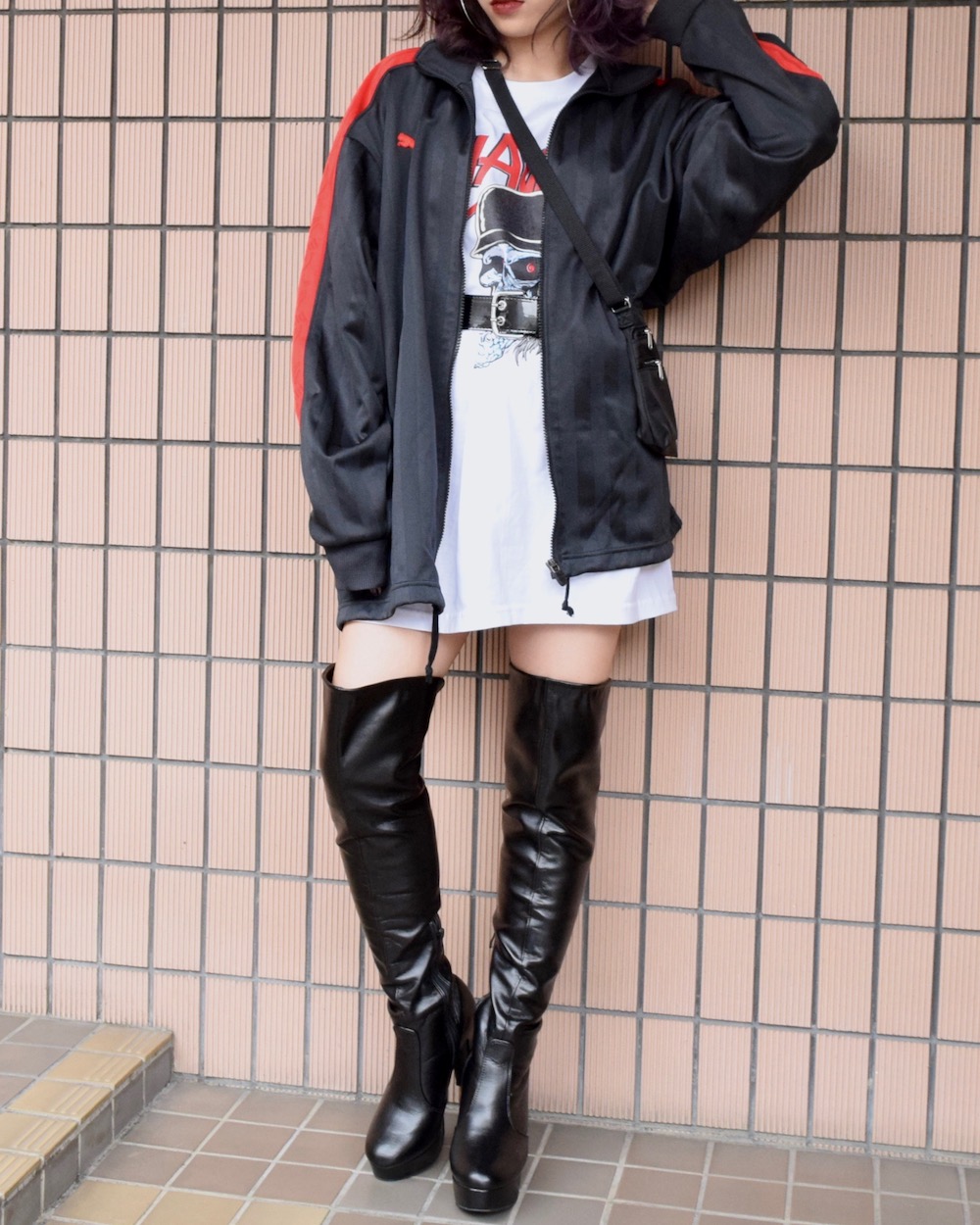 PUMA LINE SLEEVE LOGO TRACK JACKET(black/red)