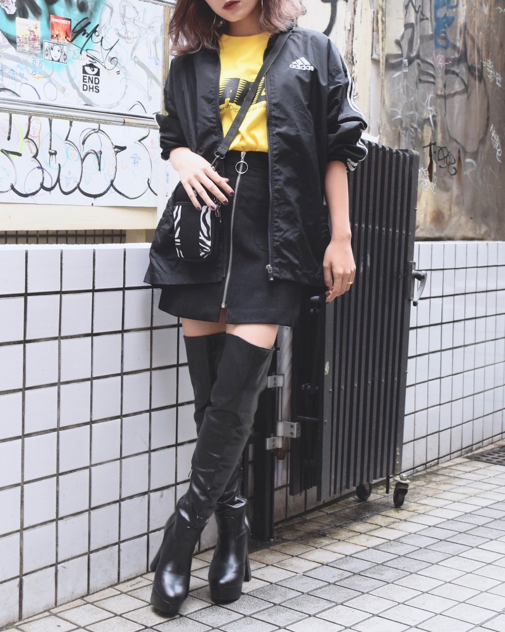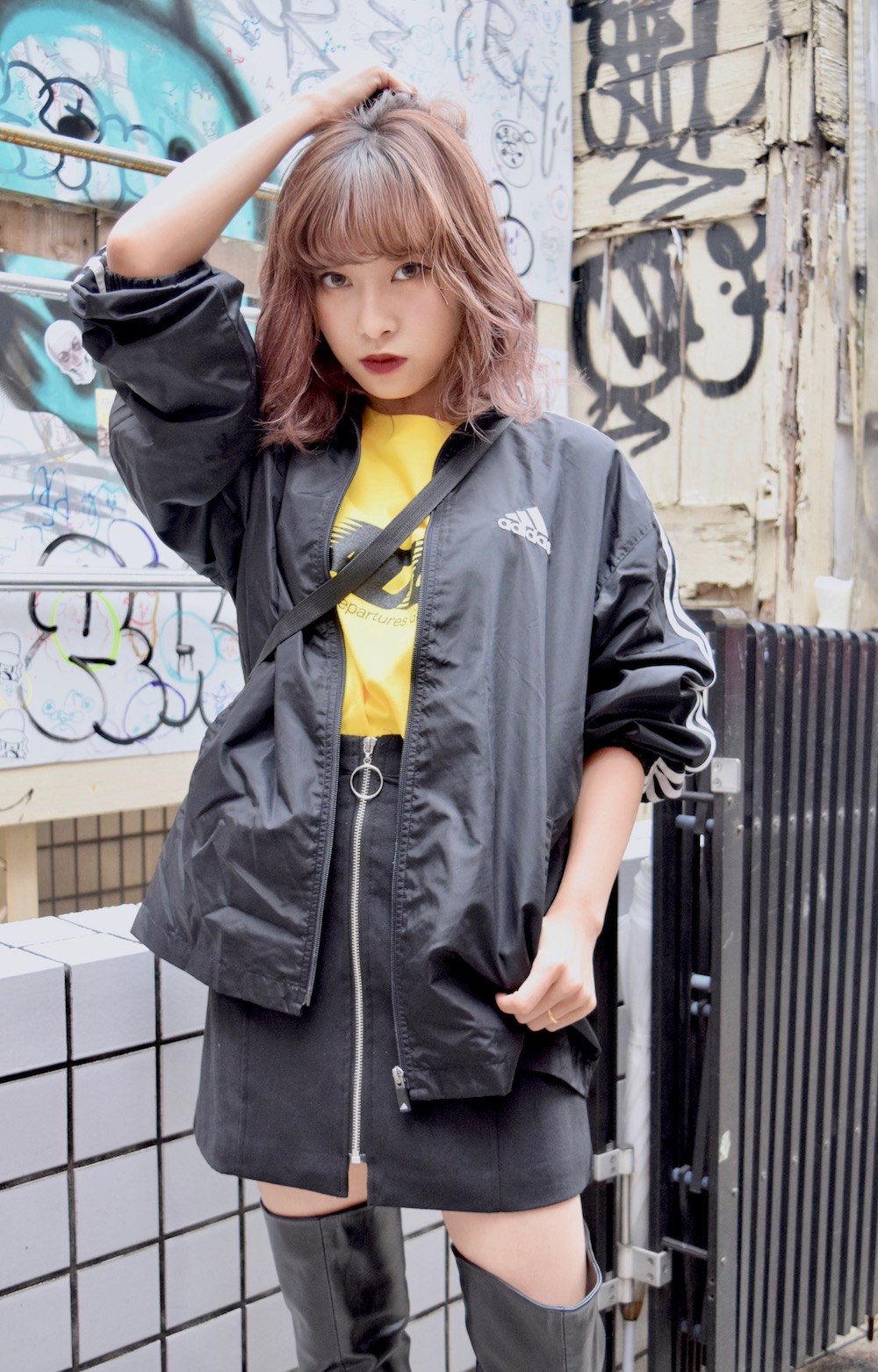 adidas 3LINE SLEEVE NYLON JACKET(black)
