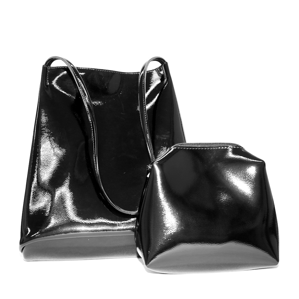 Enamel Tote-Bag *with pouch(black)