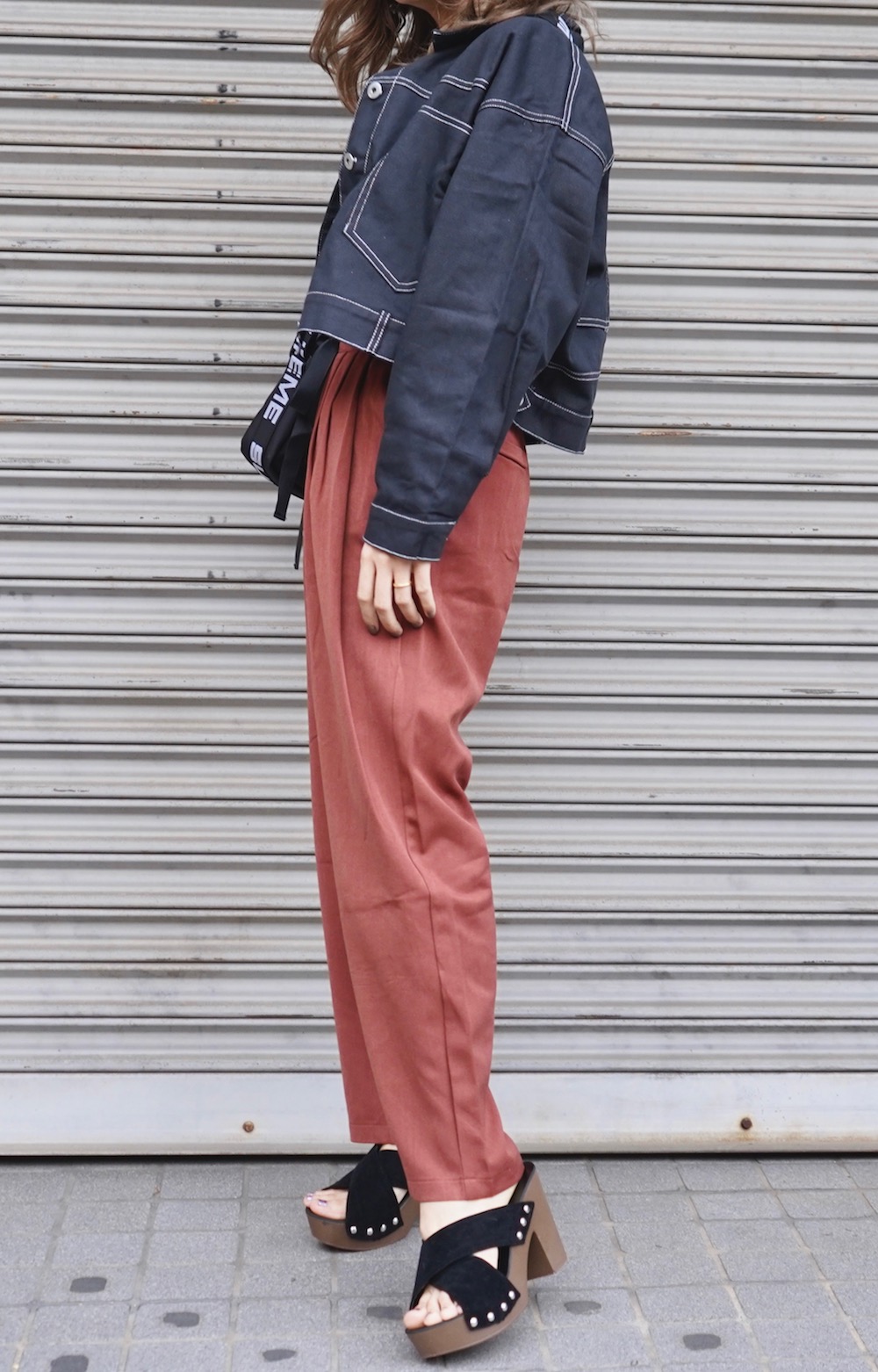 Ribbon Design Tuck Tapered Slacks (terracotta)