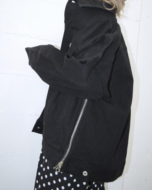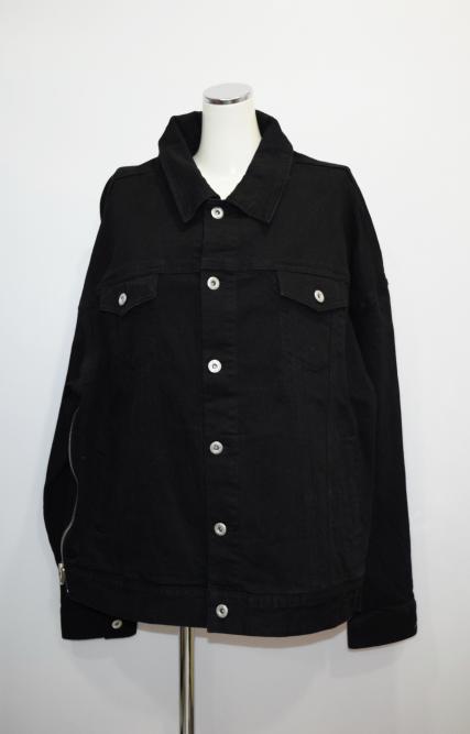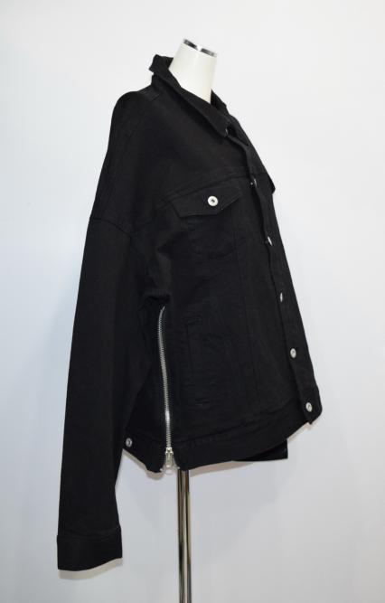 Zip Design Drop Shoulder Denim Jacket(BLK)