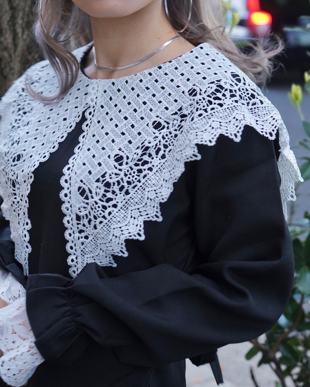 - 襟&袖口レース:WHITE