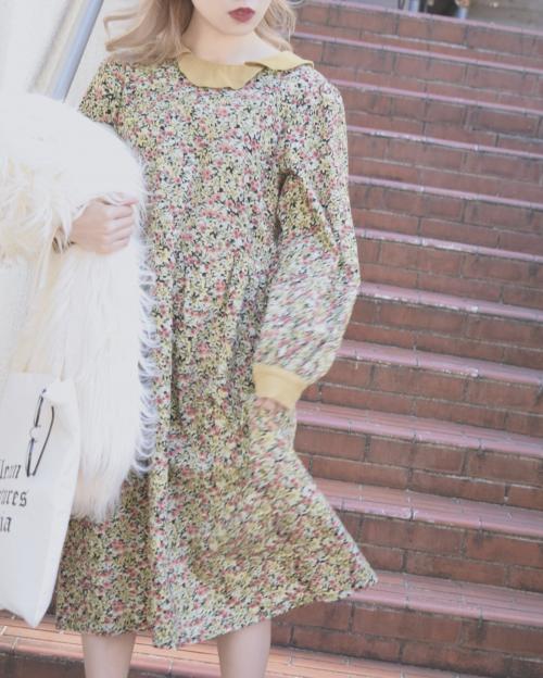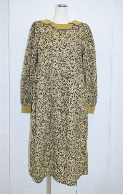 襟付きフラワーコーデュロイワンピース