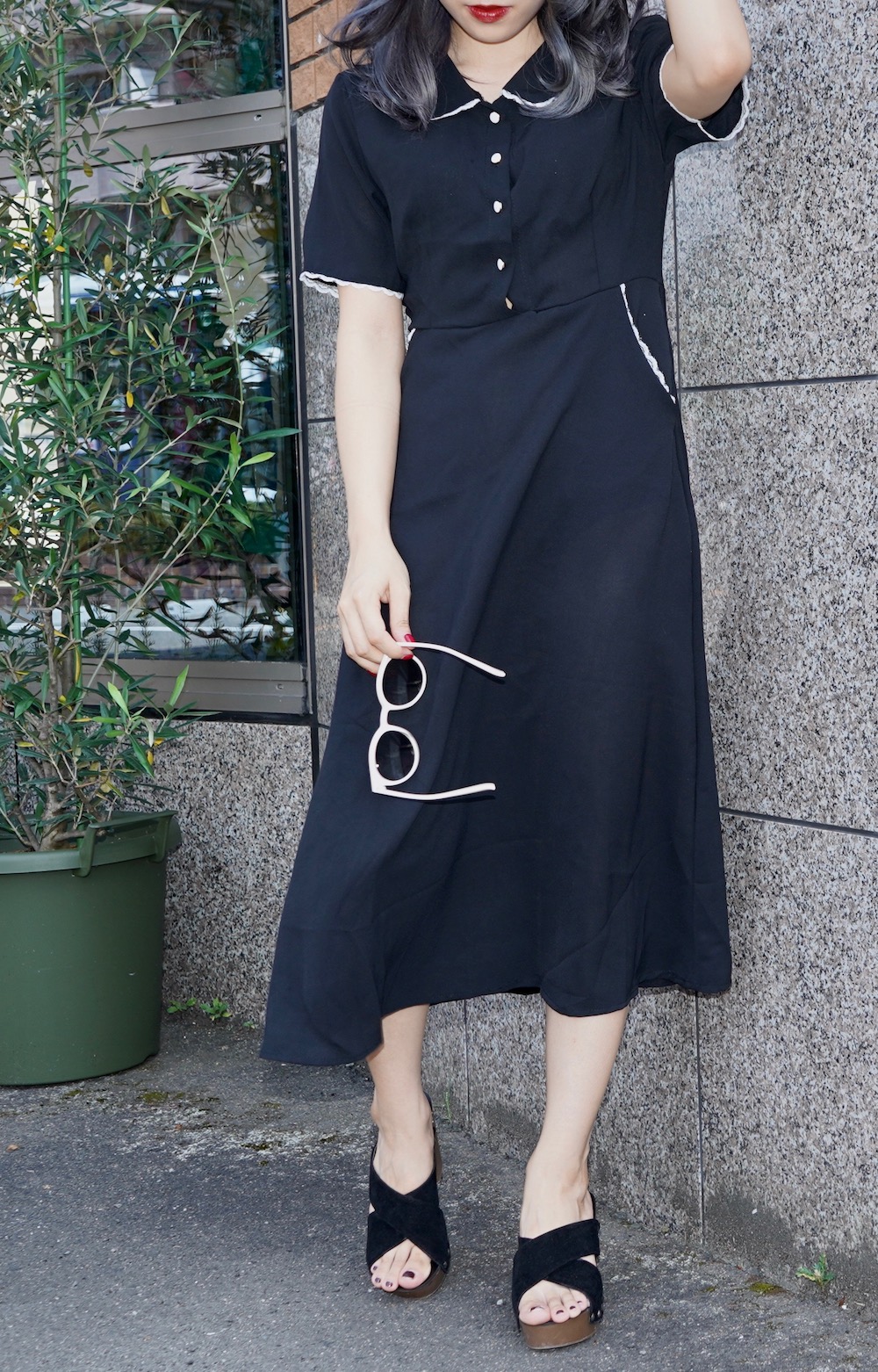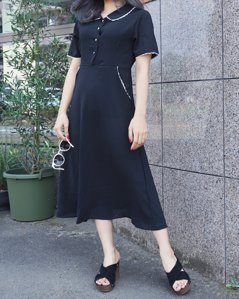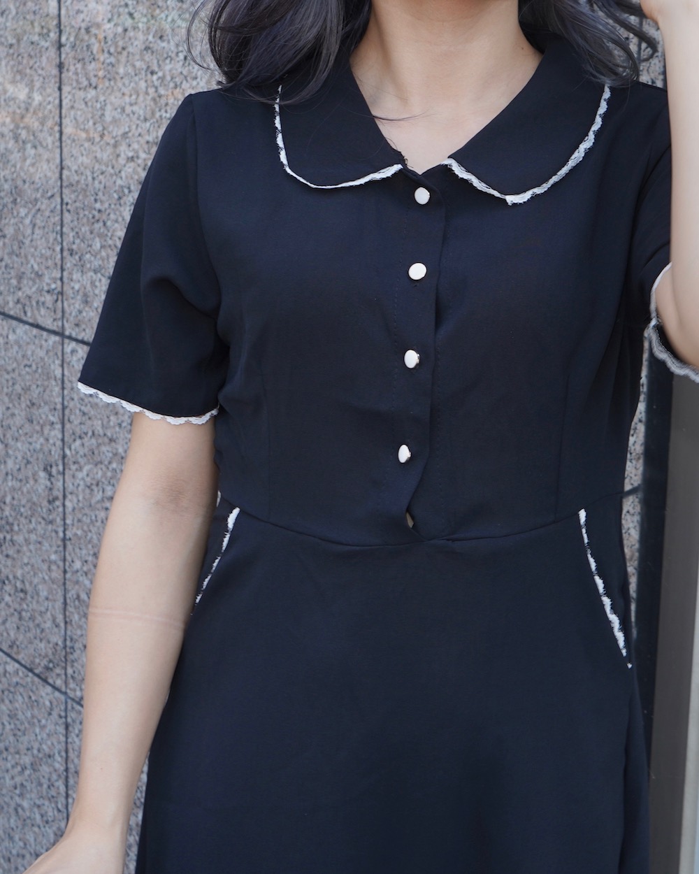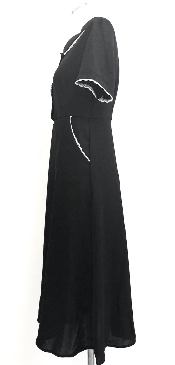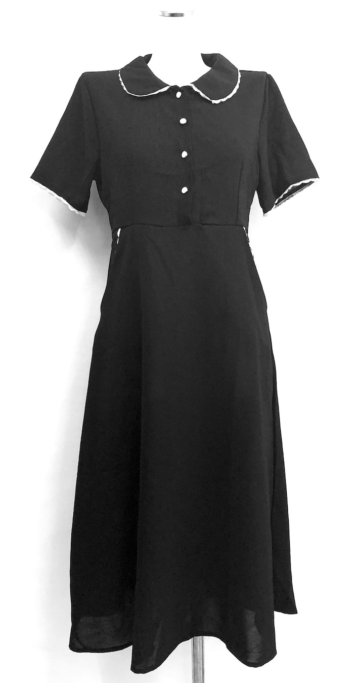 Lace Trim Round Collar Classic Onepiece (black)