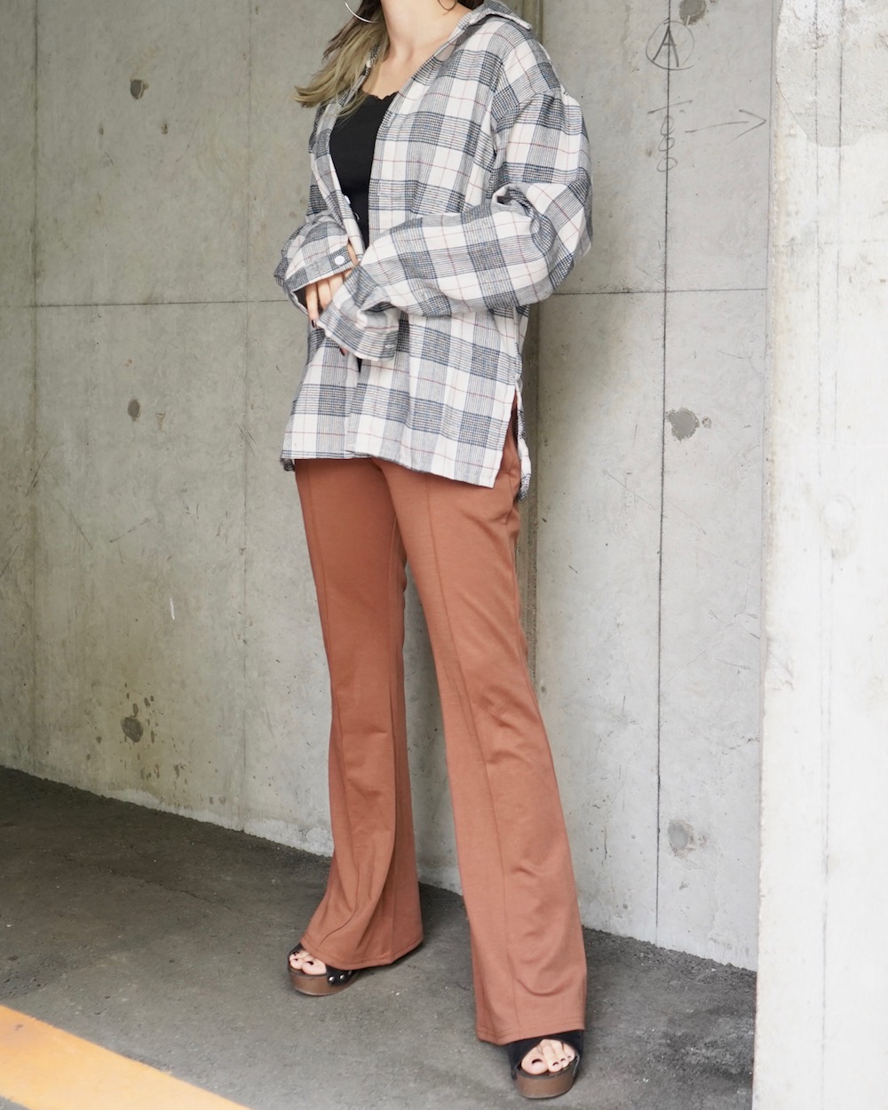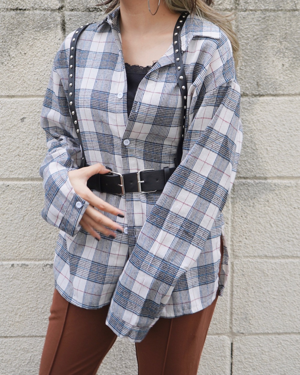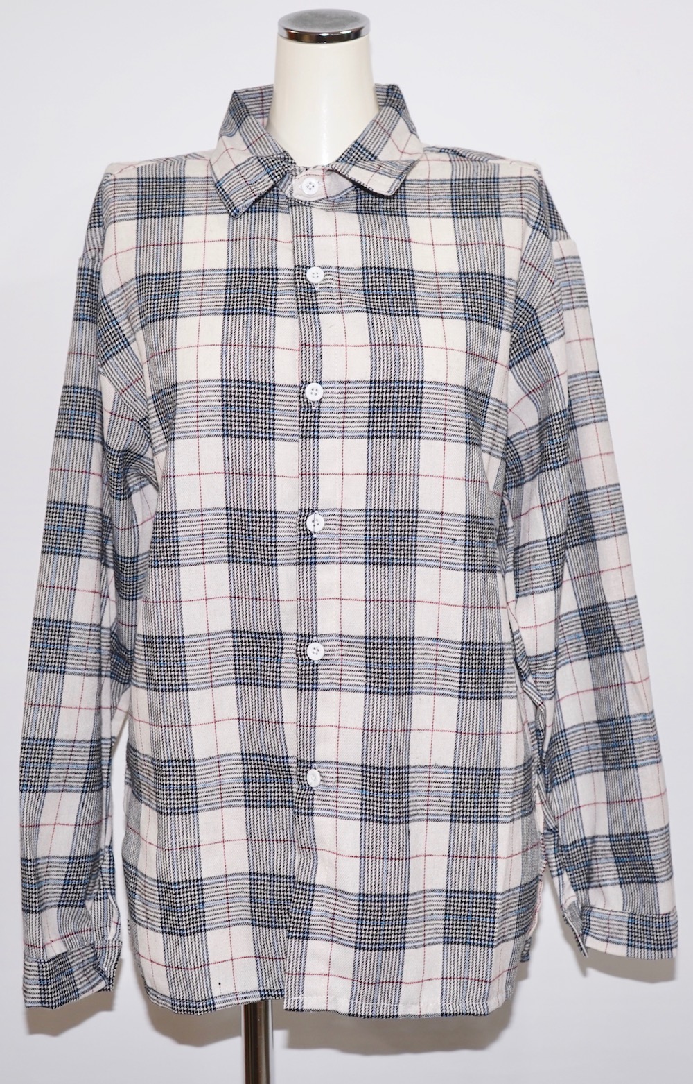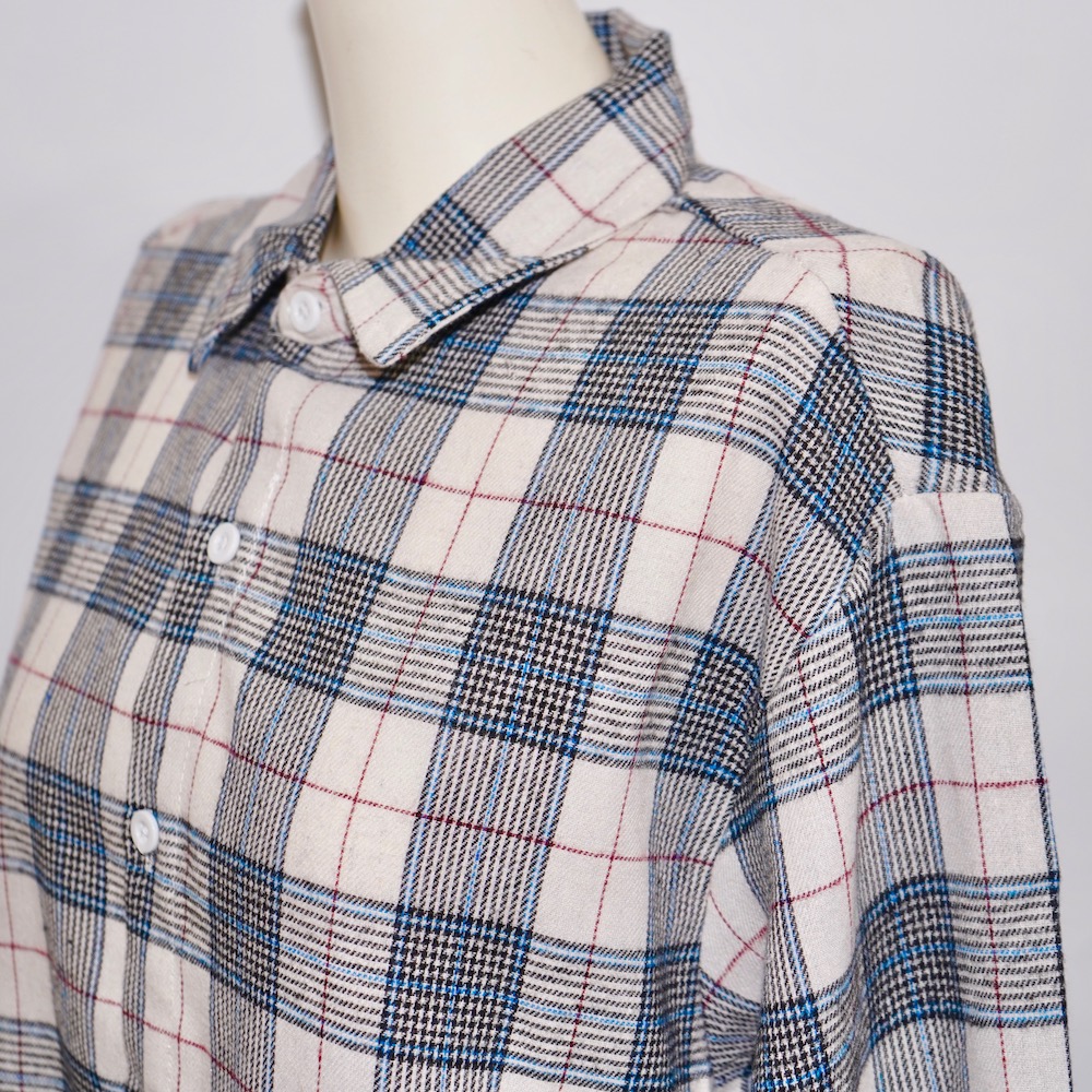 Color Mix Tartan Check Unisex Big Shirts (off white)