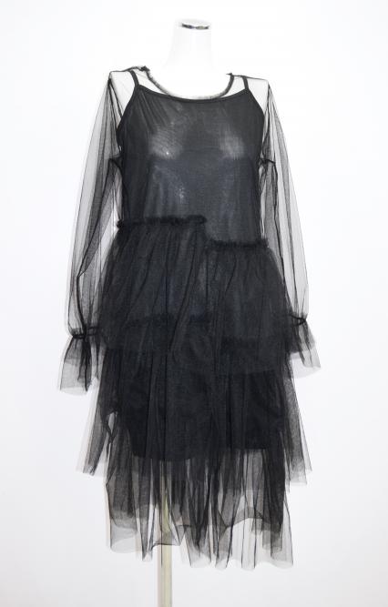 ブラックチュール ティアードワンピース*インナーワンピース付き
