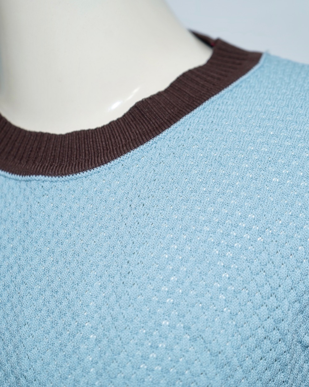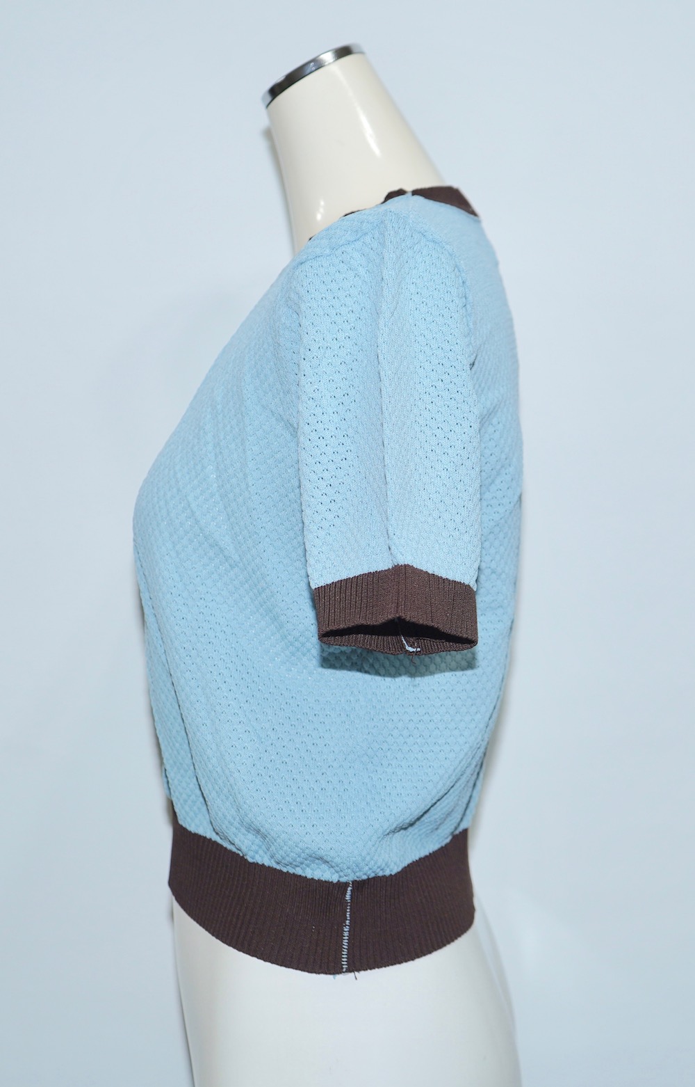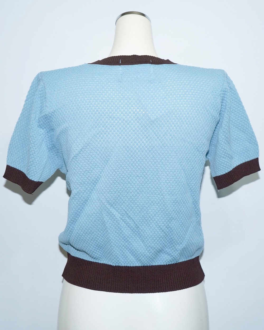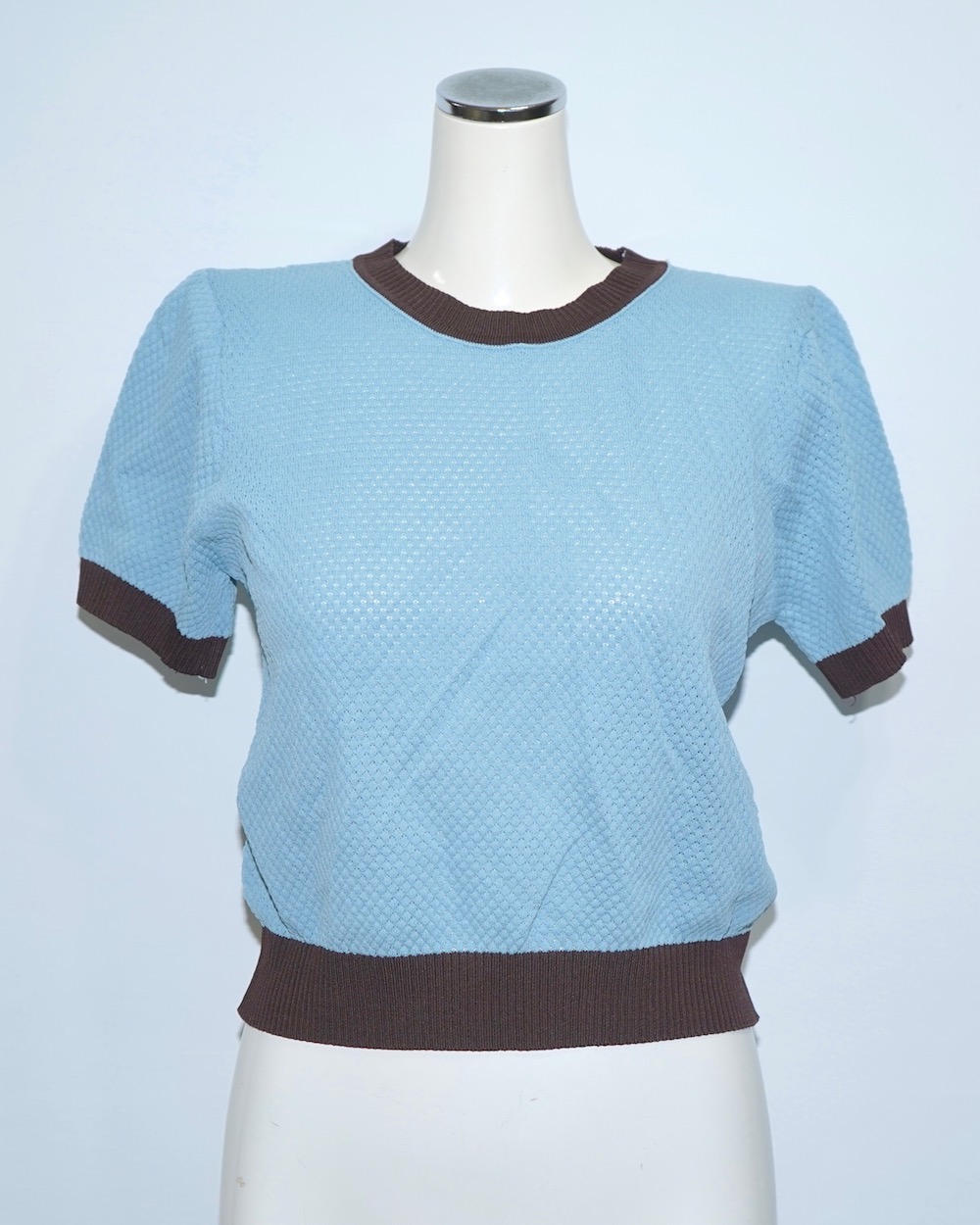 Bi-Color Crochet Knit S/S Tops (blue-brown)