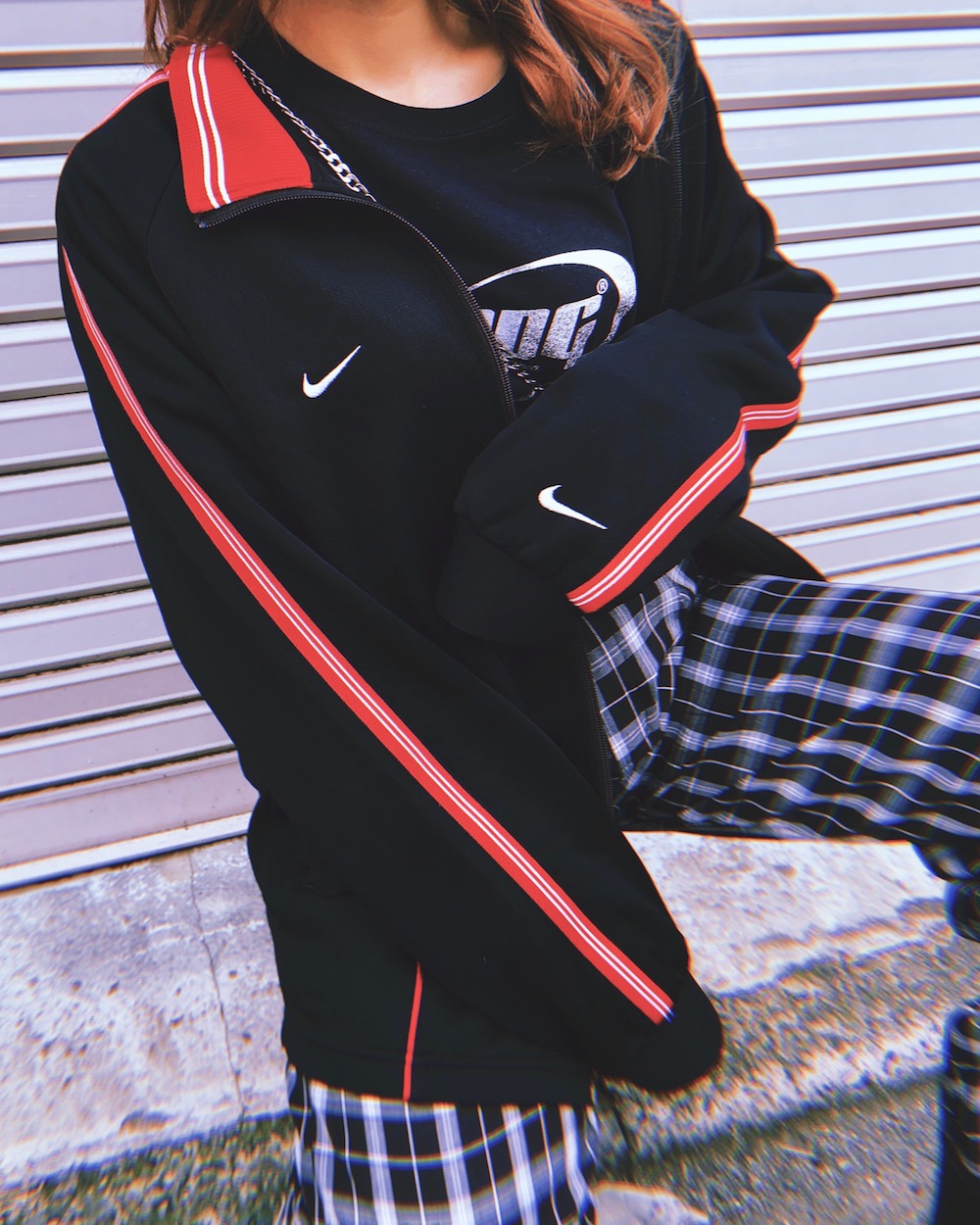 NIKE RED LINE SLEEVE BIG TRACK JACKET(black)