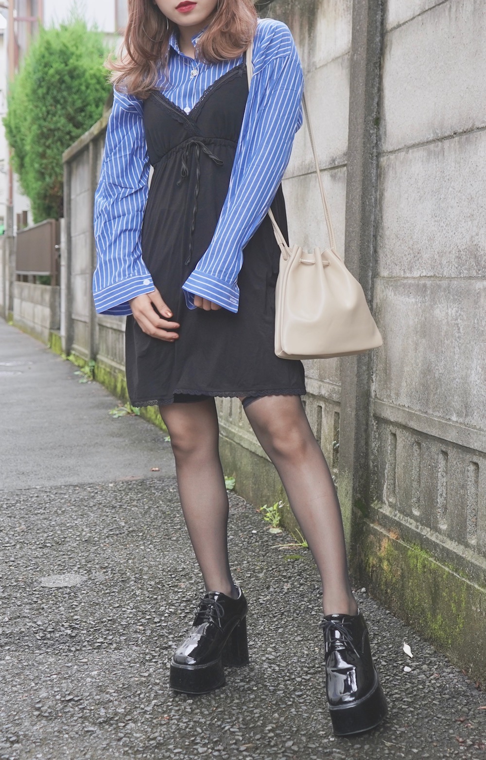 Loose Silhouette Stripe Shirts (blue)