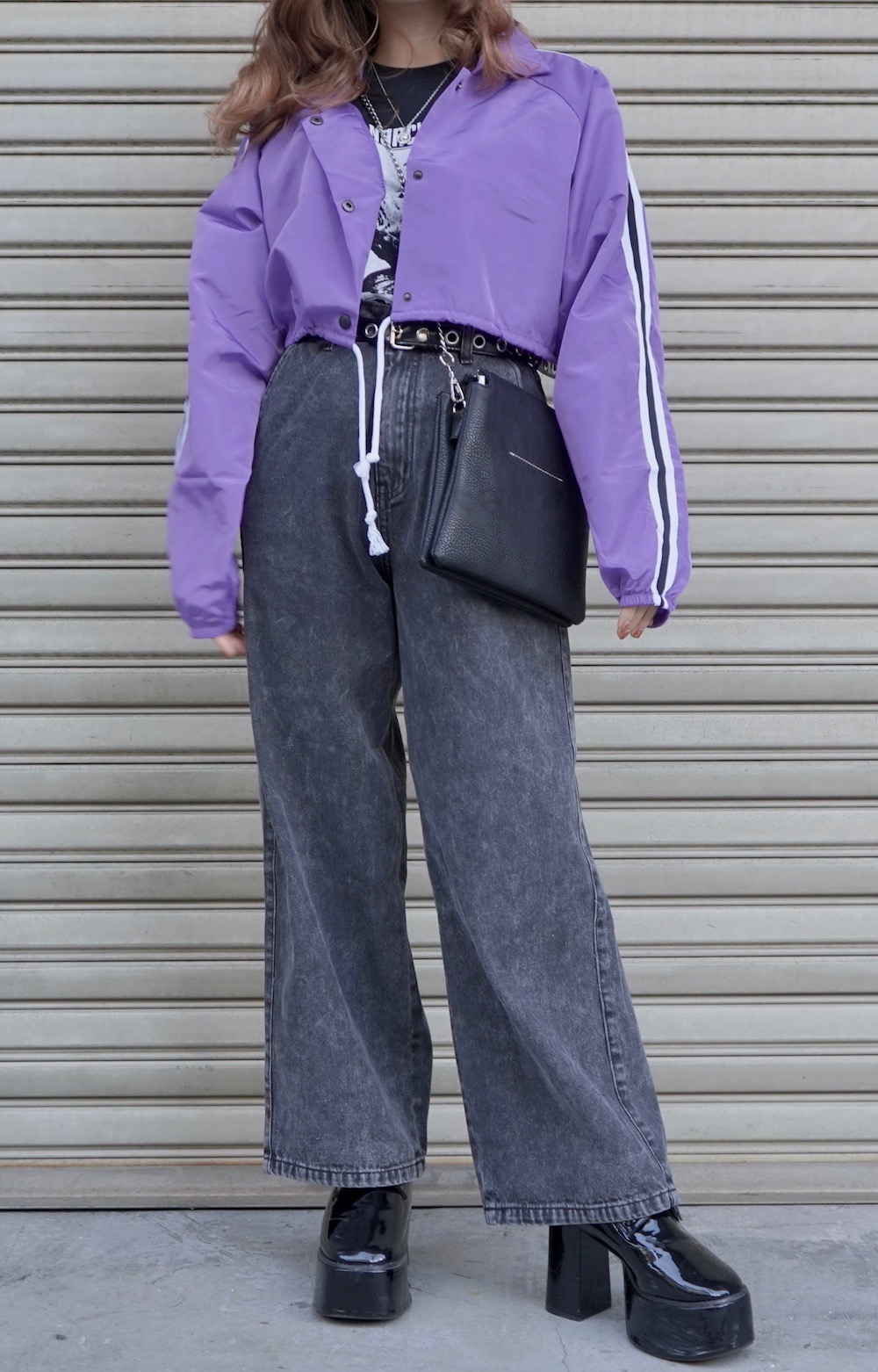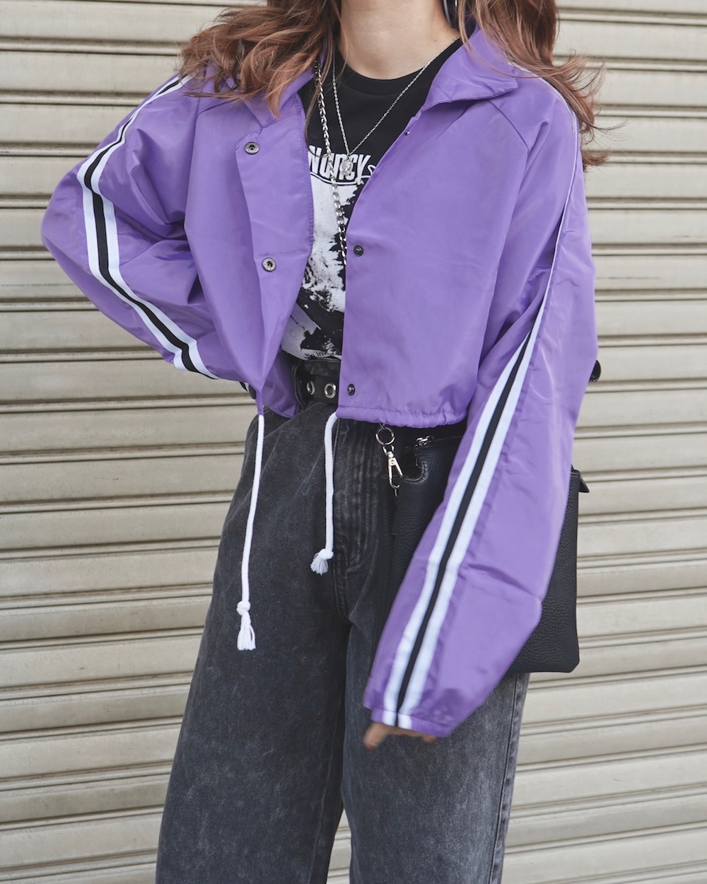 Line Sleeve Nylon Short Jacket (lilac)
