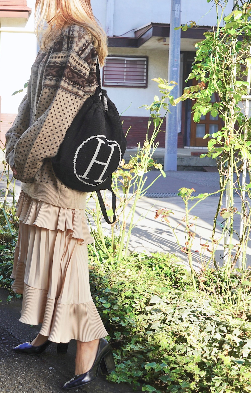 H Logo Knit Knapsack (black)