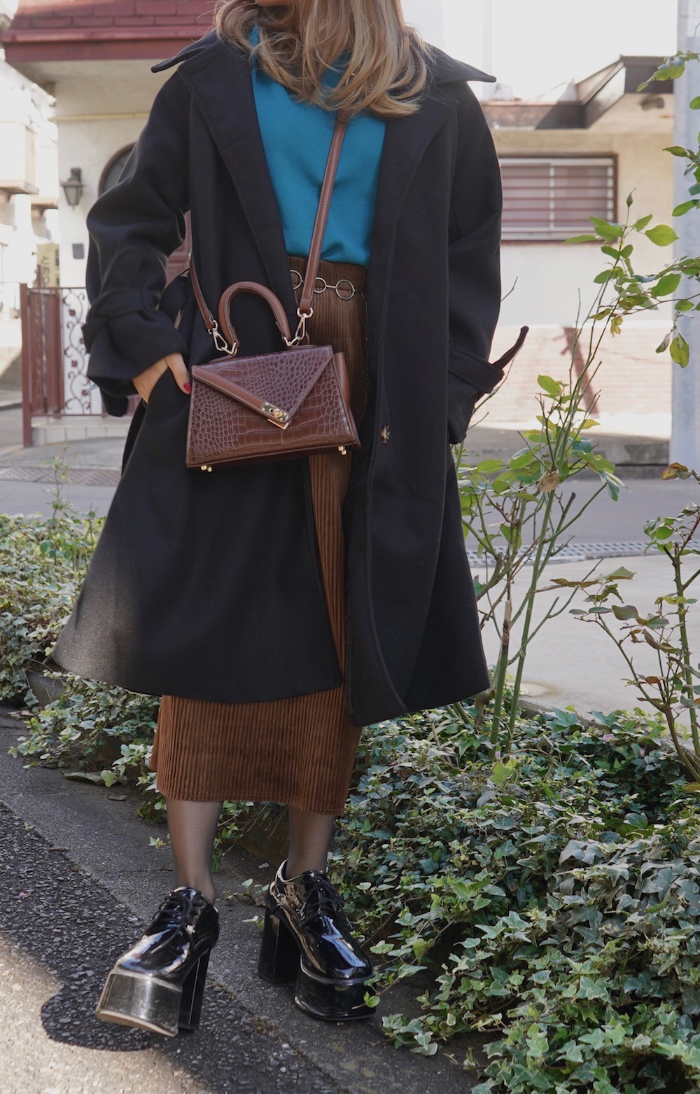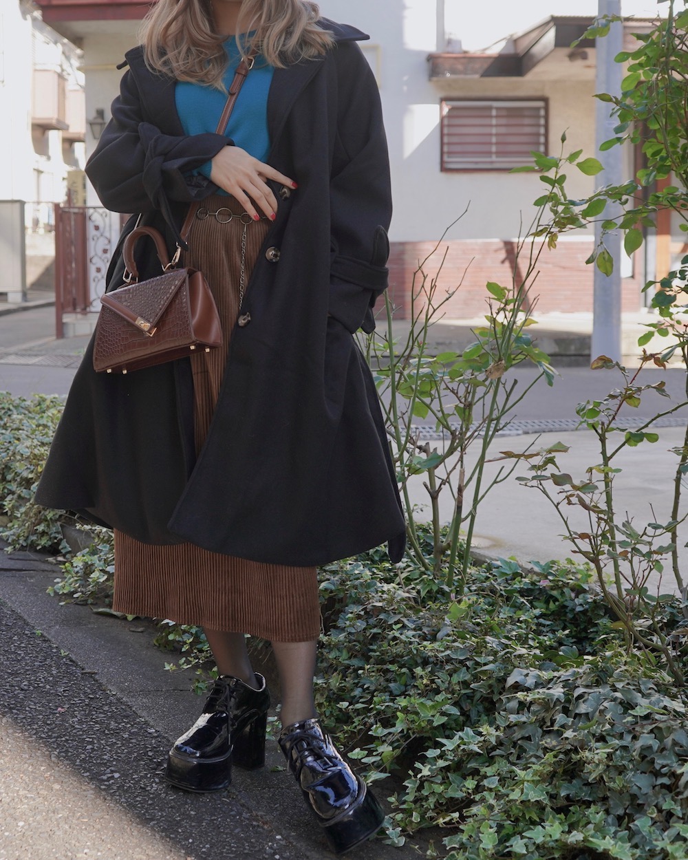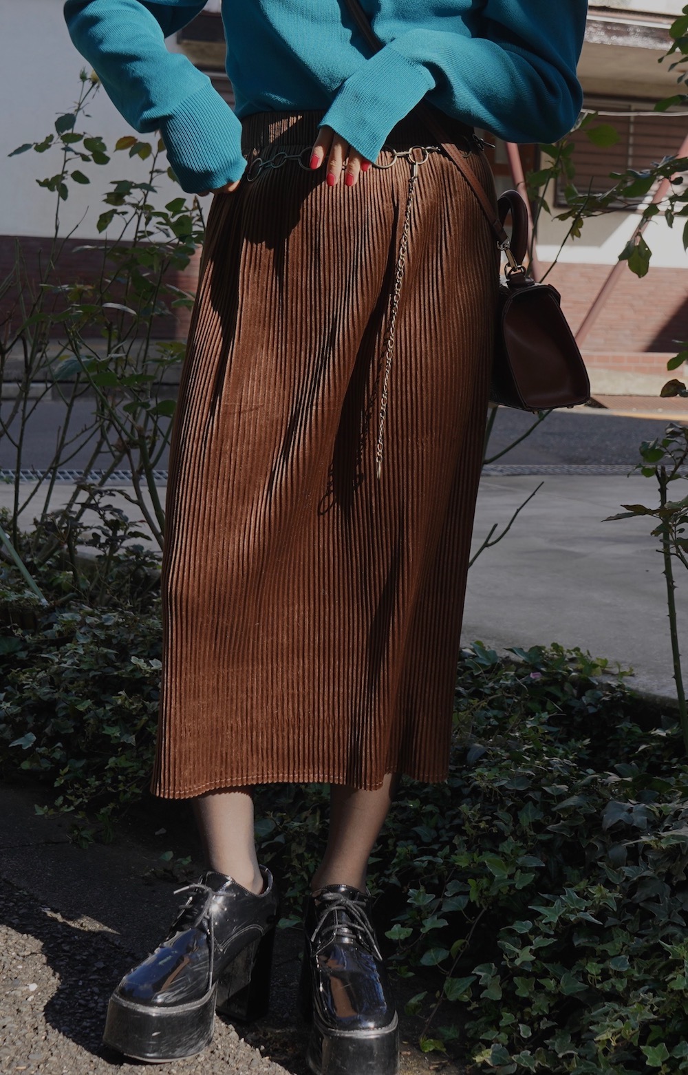 Velvet Rib H-Line Skirt (brown)