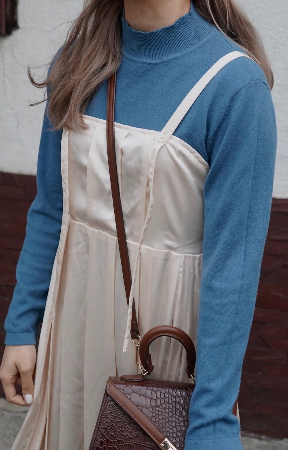 Pleats Satin Cami-Onepiece (cream)